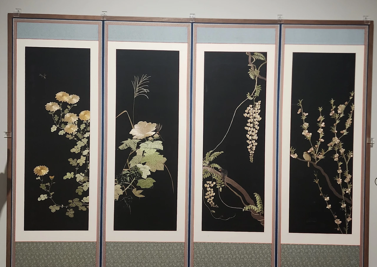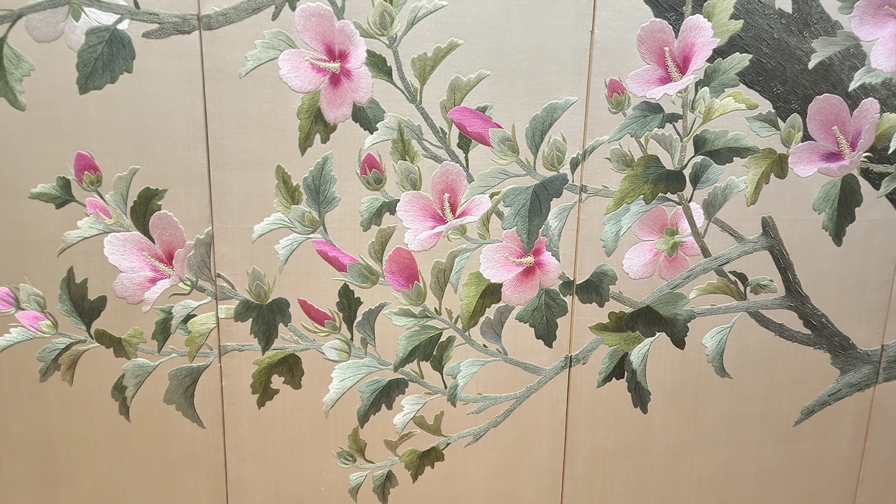 전통자수라 불리는 유물 대부분은 19세기말부터 20세기 초에 제작되었다고 한다.전시된 작품 대부분도 1900년대 작품이었다. 이번 전시는 알려지지 않은 자수 작가와 작품을 발굴, 소개하고 시대에 따라 어떻게 발전되어 있는지 살펴볼 수 있는 전시회라고한다. 10폭 병풍이 많았는데 어떤 작품은 몇 년씩 걸려서 제작한 작품도 있었고, 학교에 자수과가 있어서 학생들 공동작품도 있었다.대학교에 자수과가 있었다는 사실을 이번에 처음 알았다.