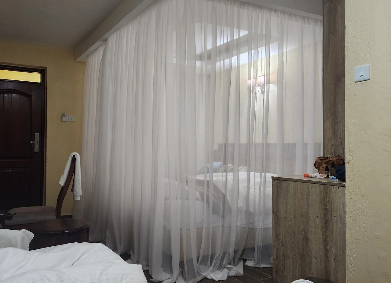 적도가 가까워서인지 하늘이 유난히 낮아 보였고 밤하늘에 별도 반짝반짝 많았다. 호텔 방에는 침대에 모기장이 쳐져 있는 것이 특징이다. 모기가 많기 때문일 거라고 짐작된다. 말라리아 약을 복용하고 있지만, 케냐에 있는 동안 외출할 때는 모기 패치를 붙이고 모기 기피제를 뿌리고 출발했다.