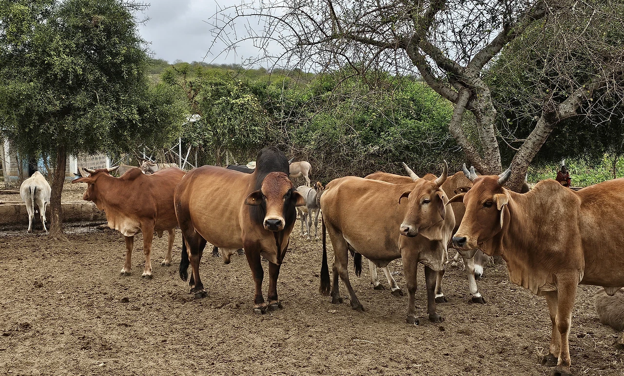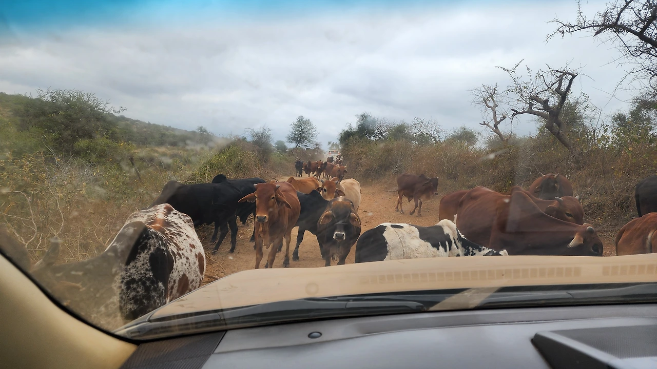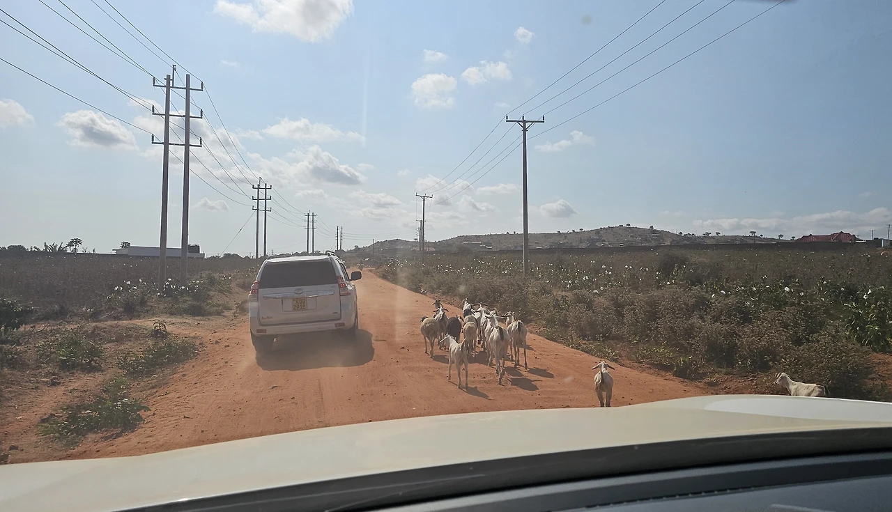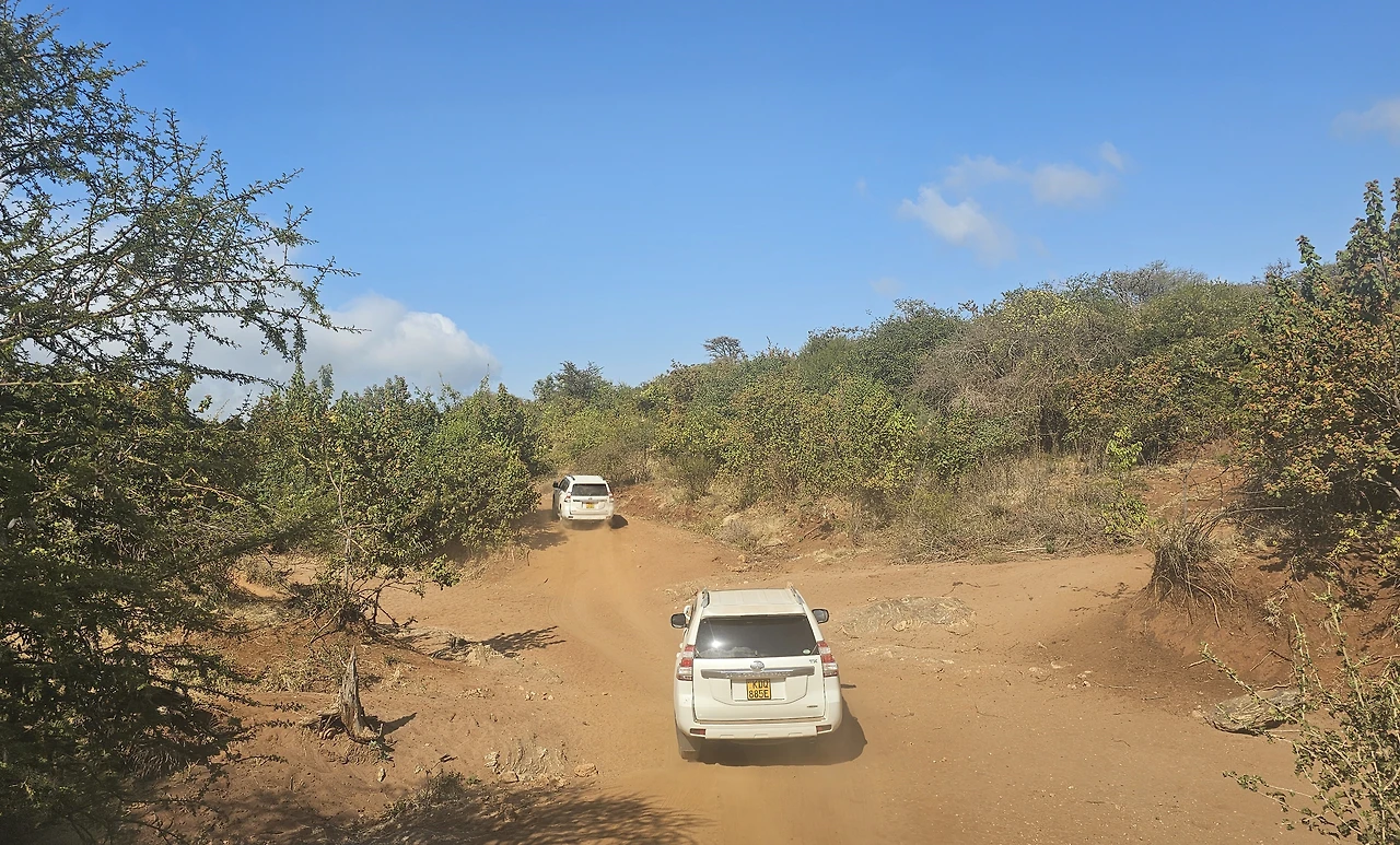 케냐가 요즘 건기라서 그런지 초원에는 마른풀과 우산 모양의 나무가 보였다. 우산 모양의 나무는 우산처럼 그늘을 넓게 만들어 주었다. 지나는 길에 방목하는 아프리카 소들과 염소 떼도 볼 수 있었다. 아프리카 소는 등 앞쪽에 낙타처럼 혹이 하나 있어서 우리나라 소와는 생김새가 달랐다. 아프리카 소가 길을 막고 서 있어서 지나갈 때까지 기다렸다. 소를 치는 목동도 남자아이들이었다. 한 손에 나뭇가지로 만든 긴 막대를 들고 소를 몰고 있었다.