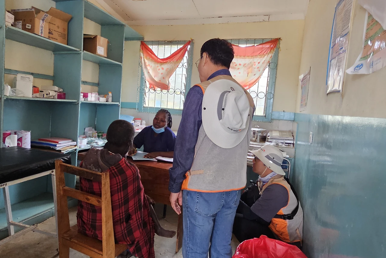 엔카코 엄마는 아파도 한 번도 병원에 가보지 못했다고 하였다. 월드비전 오실리기 본부에서 차로 엔카코 가족을 병원에 모시고 와서 목사님과 만났다. 나도 이곳 병원이 어떤 환경일까 무척 궁금했다. 수도 시설을 둘러보고 한참만에 도착한 병원은 말 그대로 보건소 정도였다. 아침인데도 환자들이 앉아서 기다리고 있었다.