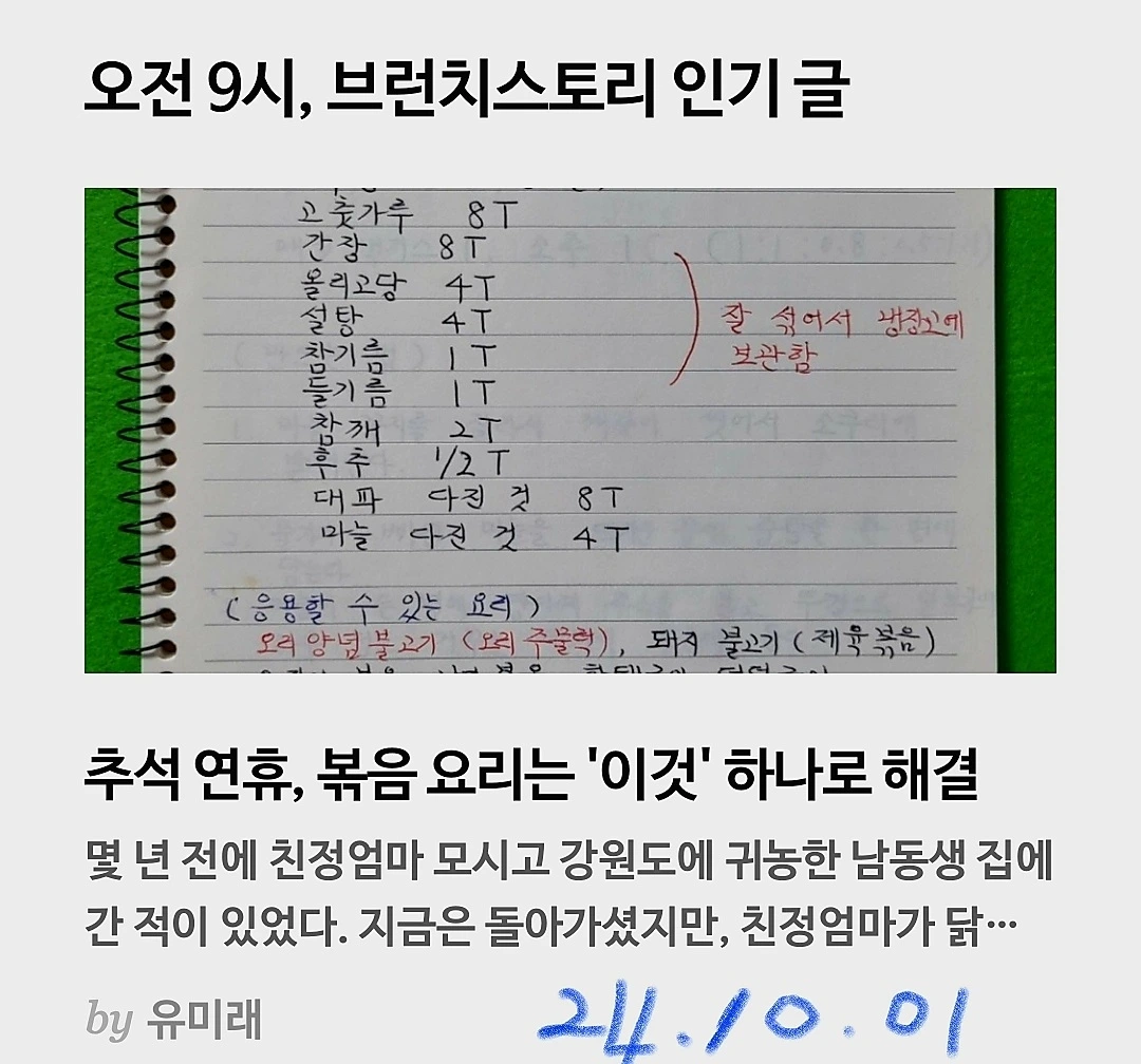 기사 제목 : 추석 음식 걱정? 볶음요리는 '이것'으로 고민 끝(2024.09.09)