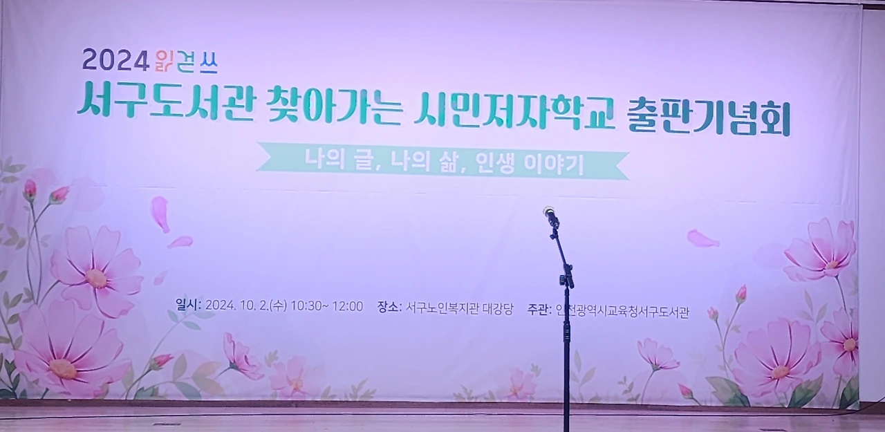 인천에는 419개의 도서관이 있다고 한다. 이렇게 많은지 몰랐다. 마을에 있는 도서관에서 프로그램을 기획하고 노인복지관의 시니어분들에게 기회를 주어 내년에도 두 번째 출판기념회에 참가할 수 있기를 기대해 본다.