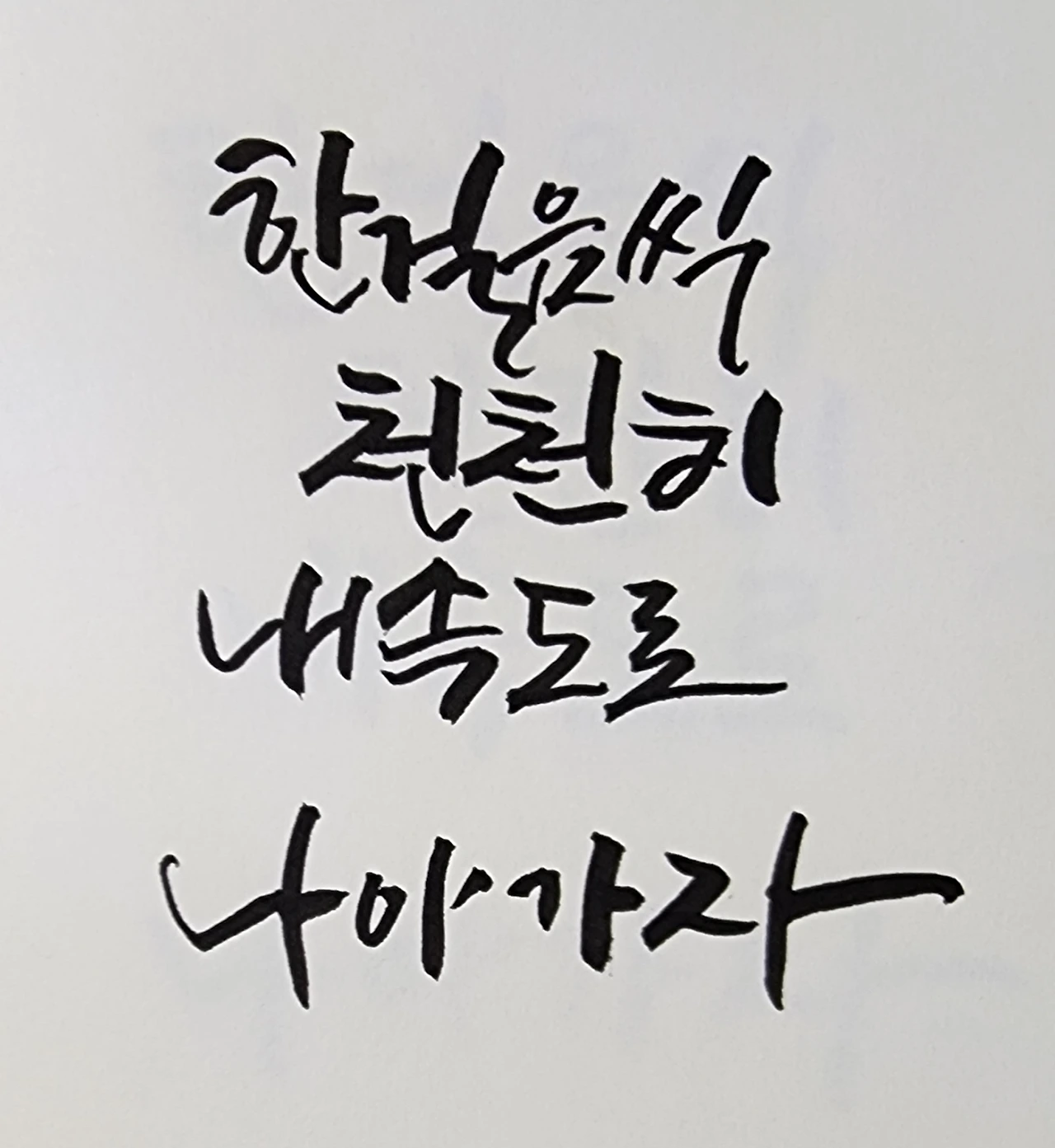 오늘도 즐겁게 캘리그라피 수업을 하고 왔다. 눈에는 안 보여도 우리 실력이 조금씩 늘 거라고 믿으며......