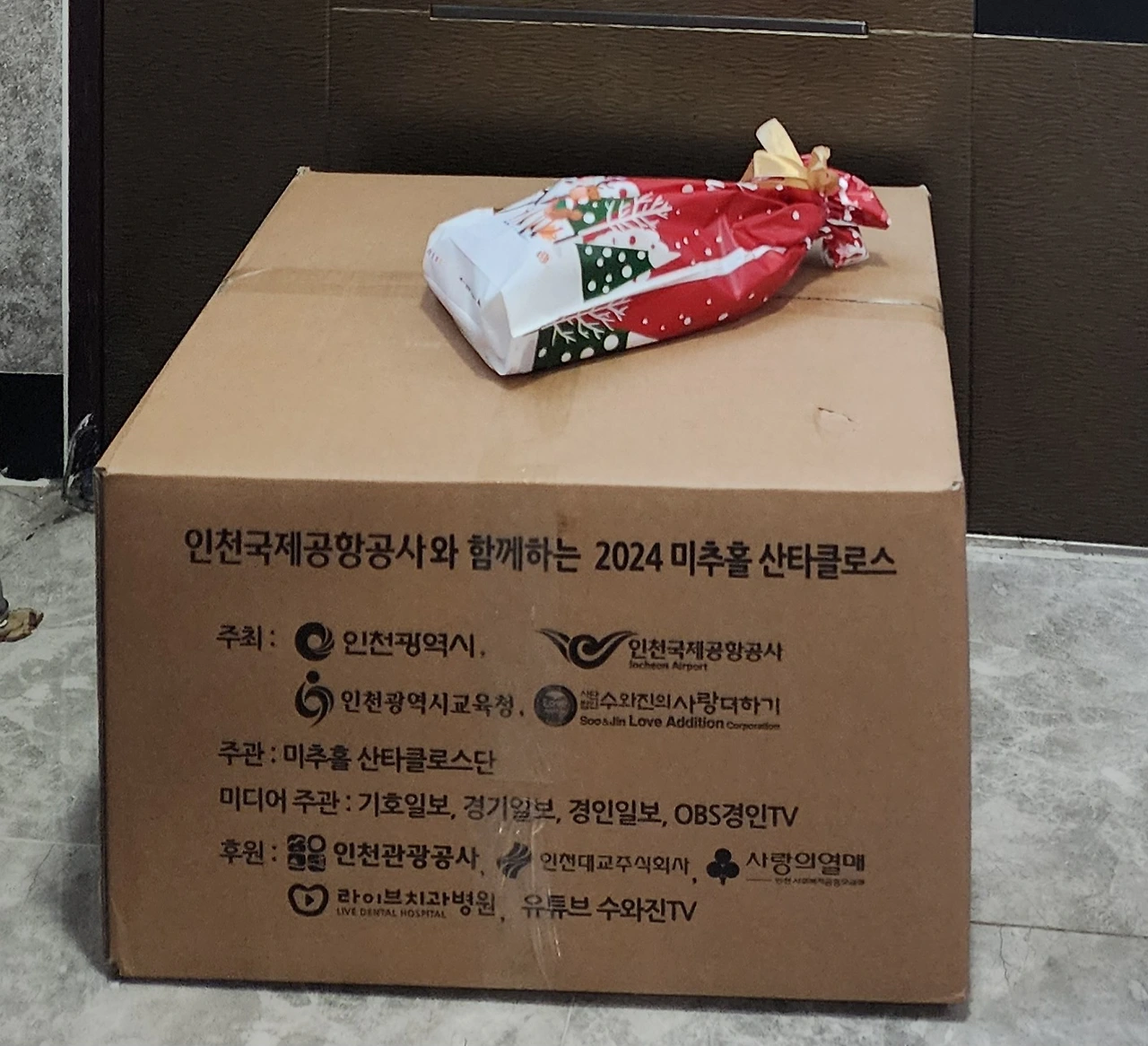 '수와 진 사랑 더하기' 행사는 매년 진행되는데 일 년 동안 거리 공연으로, 기관 후원으로, 국회의원 후원금 등으로 산타 선물을 준비해서 저소득층 어린이들에게 크리스마스날에 선물을 전달해 주는 행사다.선물 상자가 꽤 크고 묵직한 걸로 봐서 선물도 알차게 구성되었으리라 생각된다.