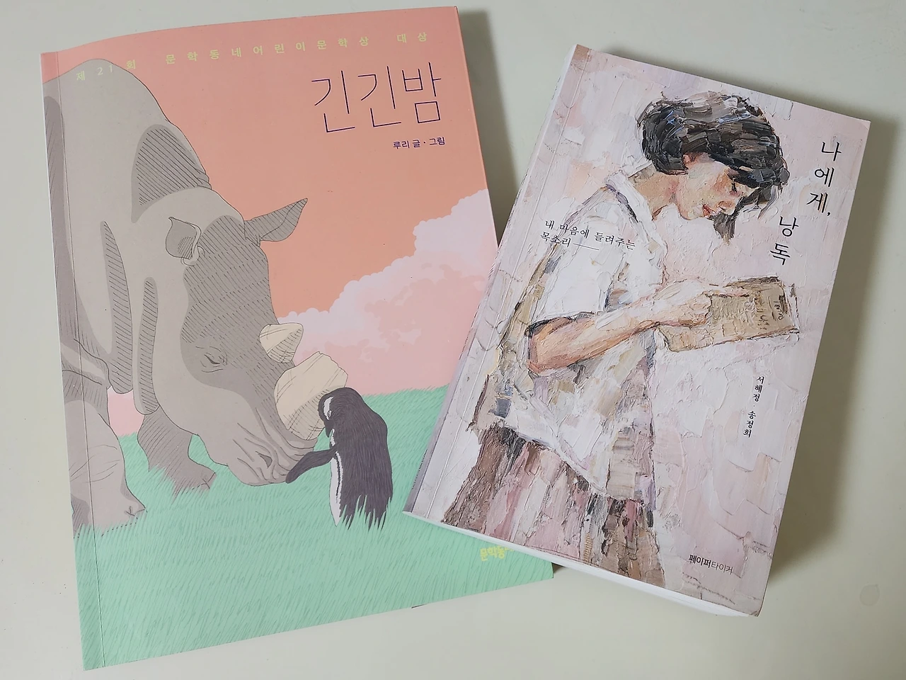서혜정, 송정희 낭독가 제자였다. 낭독 수업에 필요한 교재인 <나에게 낭독>과 <긴긴밤>을 주문하여 줌으로 일주일에 한 번씩 일 대일로 수업하였다. 이렇게 시작한 낭독 수업이 벌써 여덟 번이 넘었다.
