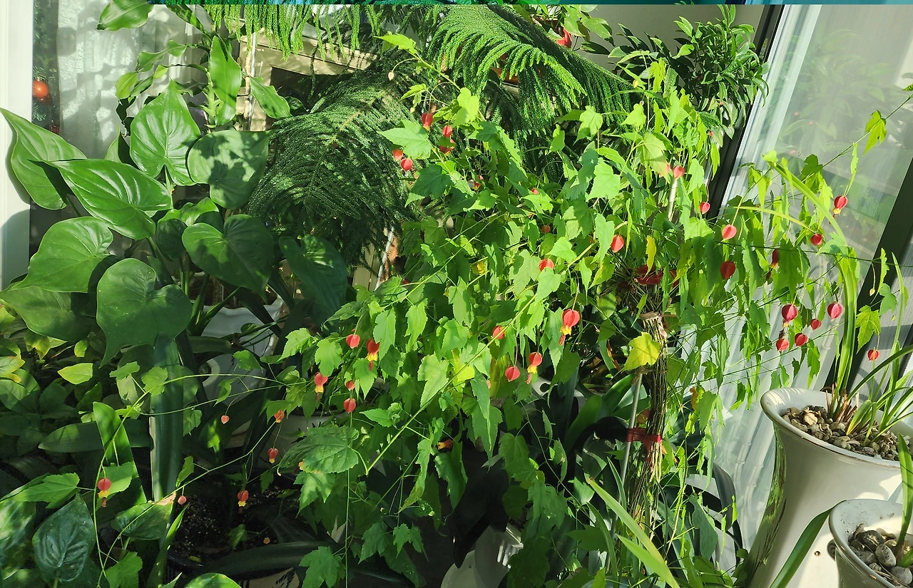 11월에 피기 시작했던 브라질 아브틸론은 지금까지 종모양 꽃을 매달고 지금까지 베란다를 밝혀주며 우리에게 기쁨을 주고 있다. 한겨울에 핀 화사한 꽃을 보며 식물이 주는 기쁨을 올겨울에 맘껏 누려본다.