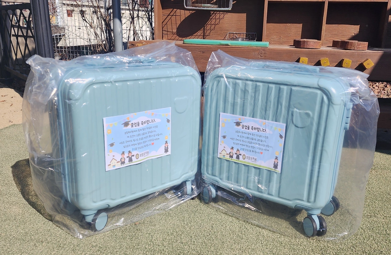 1시간 30분의 졸업식에 의젓하게 앉아있는 유아들을 칭찬해주고 싶었다. 졸업식이 끝나고 졸업 앨범과 선물로 유아용 캐리어를 받았다. 캐리어는 여행하는 것을 좋아하는 손자들에게 좋은 선물이 될 것 같다. 졸업 선물을 받는 것이 초등학교와 다른 점이다.