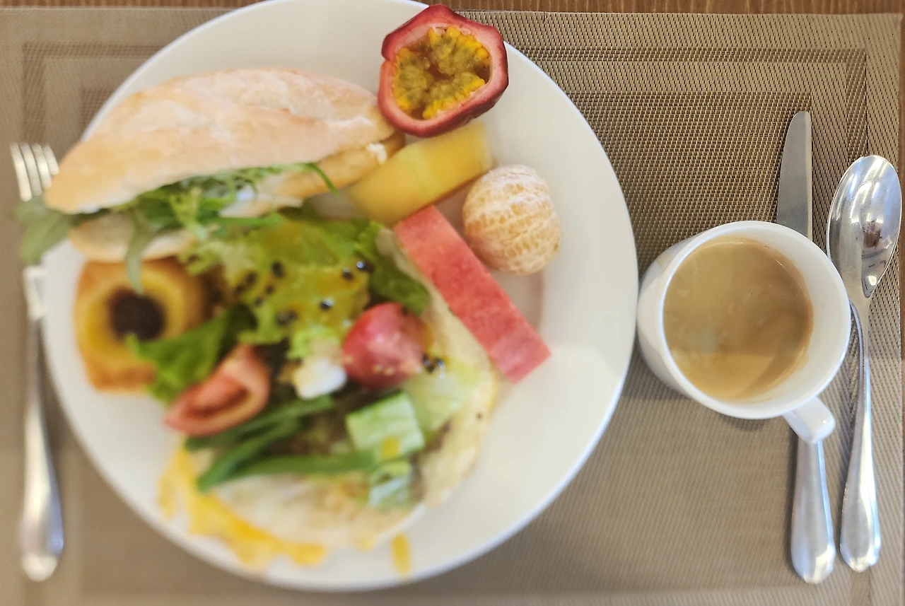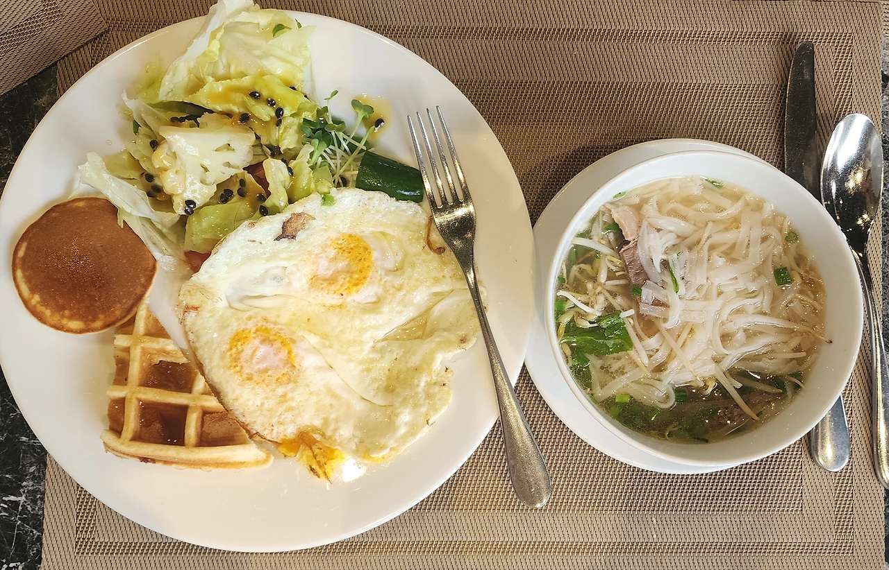 첫날은 몇 가지 빵을 먹었는데 에그타르트가 맛있었고, 둘째 날엔 직접 만들어 주는 베트남 샌드위치를 아들이 추천해 주어 먹었는데 맛있었다. 세 번째 날 조식은 쌀국수와 달걀 프라이와 과일을 먹었는데 나는 완숙을 좋아해서 만들어 주는 직원에게 무심코