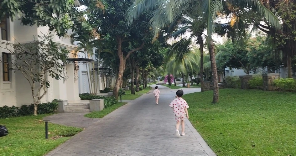 숙소에 돌아오니 쌍둥이 손자가 물놀이를 마치고 유튜브를 보고 있었다. 베트남이지만 유튜브도 한국어로 볼 수 있었다. 틈틈이 핸드폰도 하며 잘 놀고 있었다. 내가 산책 가자고 했더니 좋다며 벌떡 일어났다.