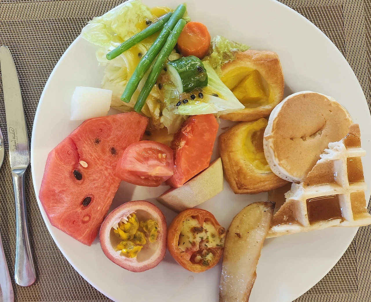 며느리가 손자 밥을 챙기는 동안 잠시 기다렸다가 음식을 가지러 갔다. 여행 가서 내가 가장 좋아하는 것이 호텔 조식이다. 빵을 좋아하기에 다른 음식은 거의 먹지 않고 3일 내내 샐러드와 빵, 과일, 커피 정도로 아침을 먹었다.