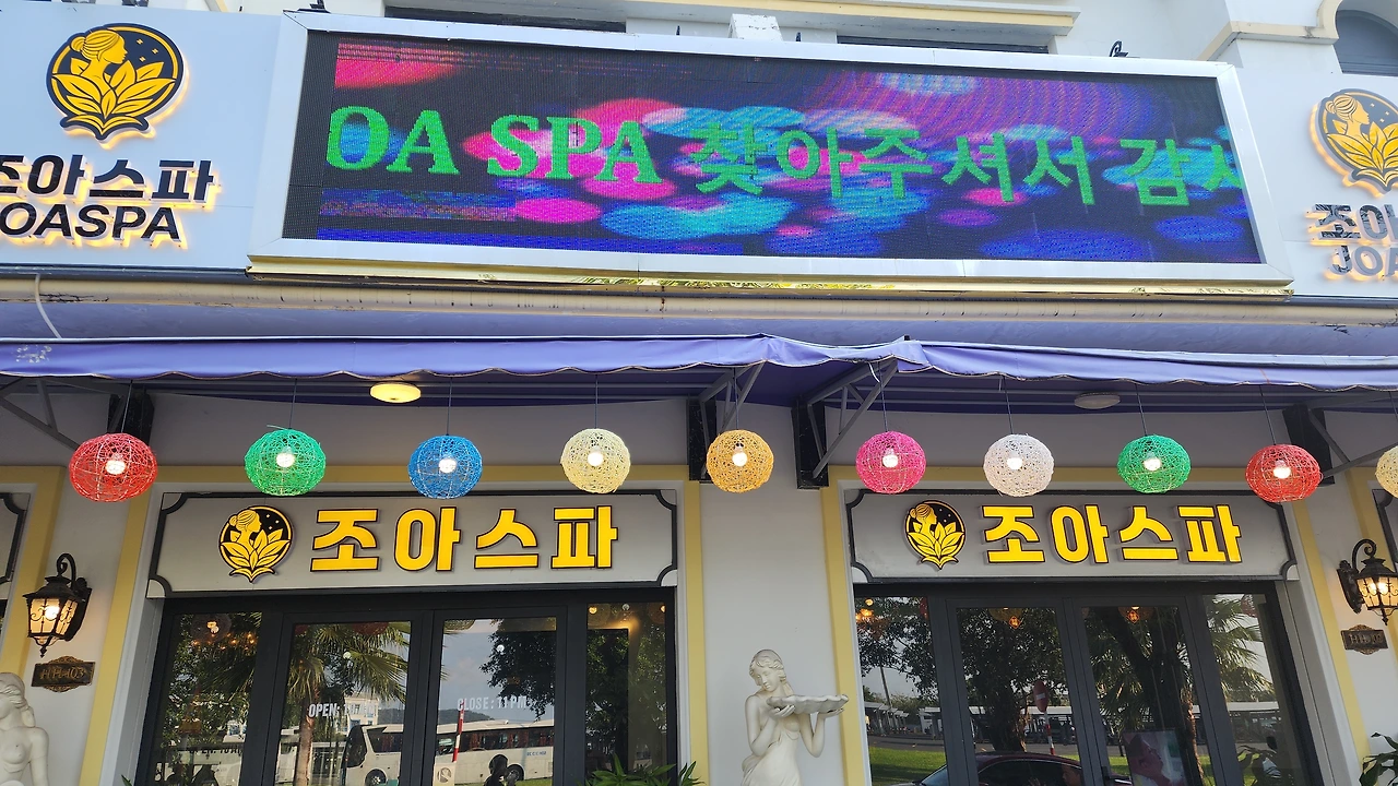 마사지는 그랜드 월드에 위치한 한국 사람이 운영하는 '조아 스파'에 갔는데 며느리가 한국말로 카톡으로 예약하고 소통했다. 리조트 로비에서 픽업을 해주고 마사지가 끝나면 다시 데려다 주어 편했다. 가격도 리조트 내 스파의 반값이면 되었다.