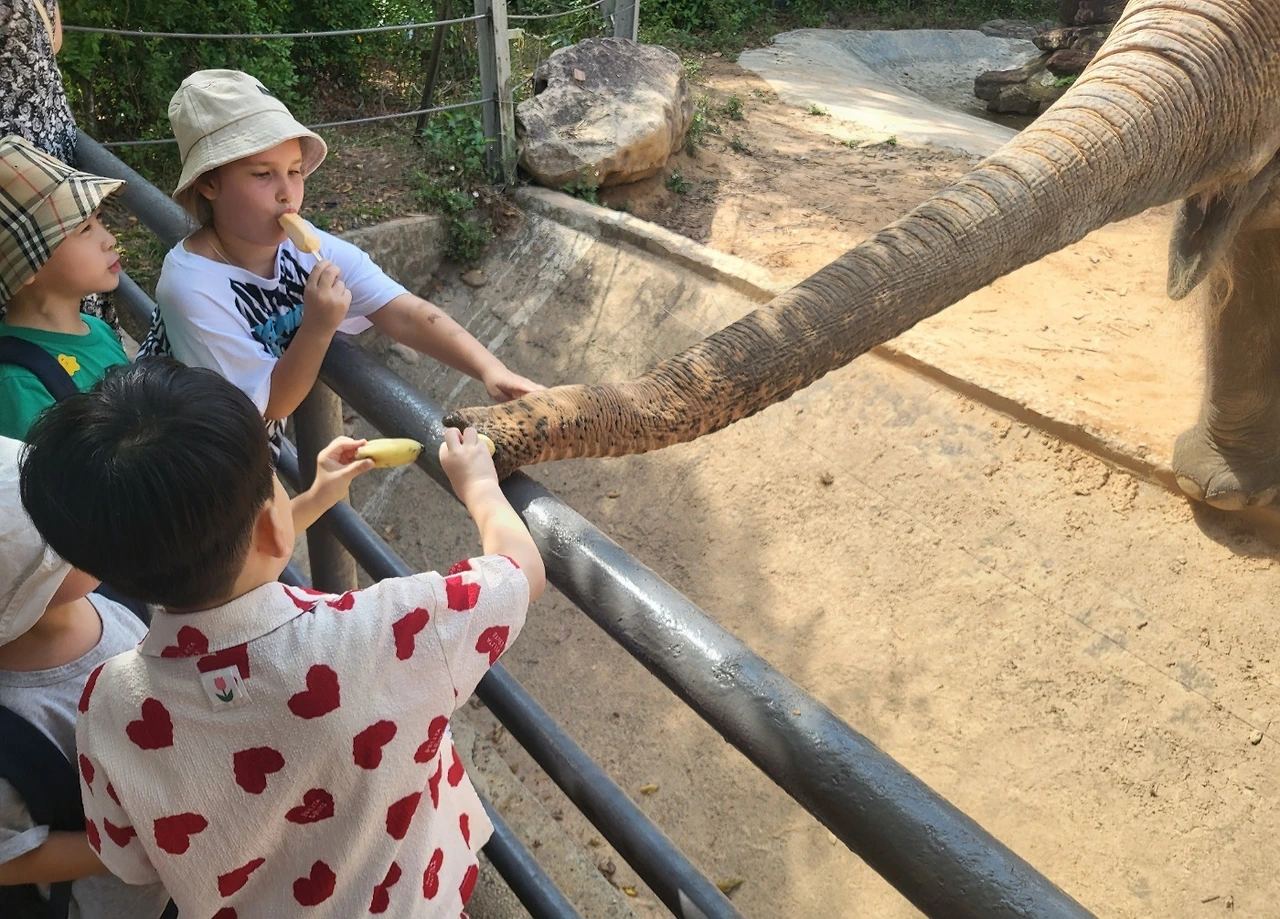 코끼리 마을에서 코끼리 먹이인 미니 바나나를 사서 먹이 주기 체험을 하였고, 기린 카페에서 풀을 사서 기린에게 먹이를 주었다. 조류관에서는 큰 손자가 앵무새를 손에 올려놓는 체험을 하였는데 둘째는 안 한다고 해서 구경만 하였다. 조류관에는 새들이 먹을 수 있게 옥수수와 과일 등을 나무에 매달아 놓은 것이 인상적이었다.