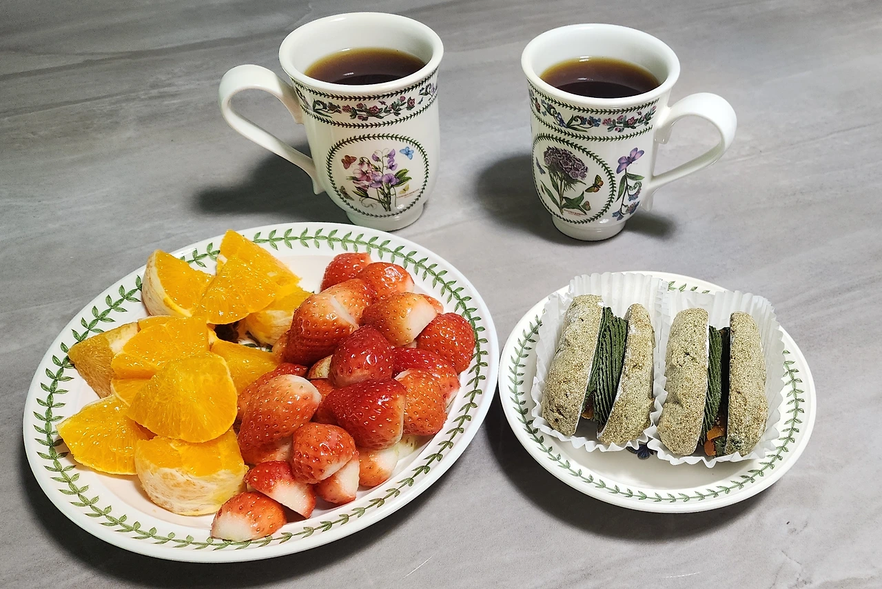 특히 아침은 아침잠이 많은 나를 배려해서 조금 늦게 10시 정도에 먹는다. 아침밥 대신 간단한 브런치로 바꾸었는데 요즘 남편이 늘 준비한다. 간단하게 떡이나 빵과 내린 커피를 먹기도 하고 과일을 준비할 때도 있다.