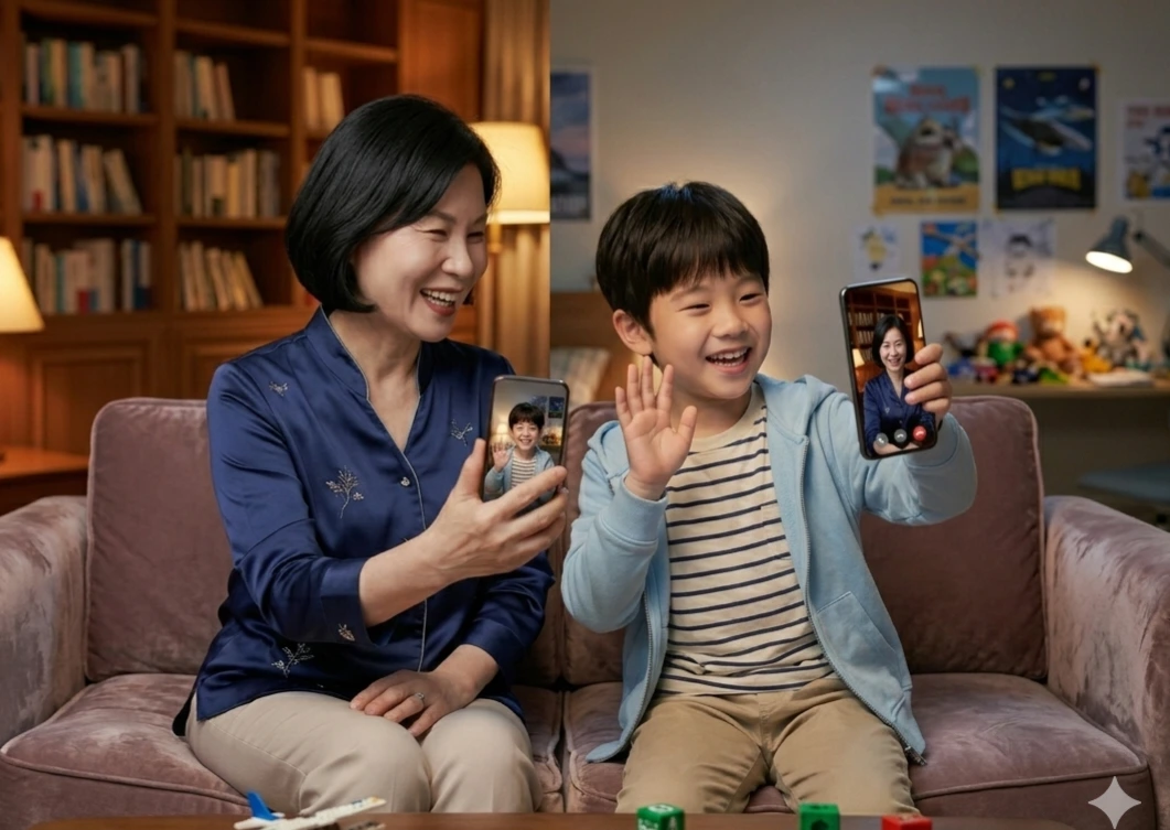 화면 속에 할머니 얼굴이 나와요