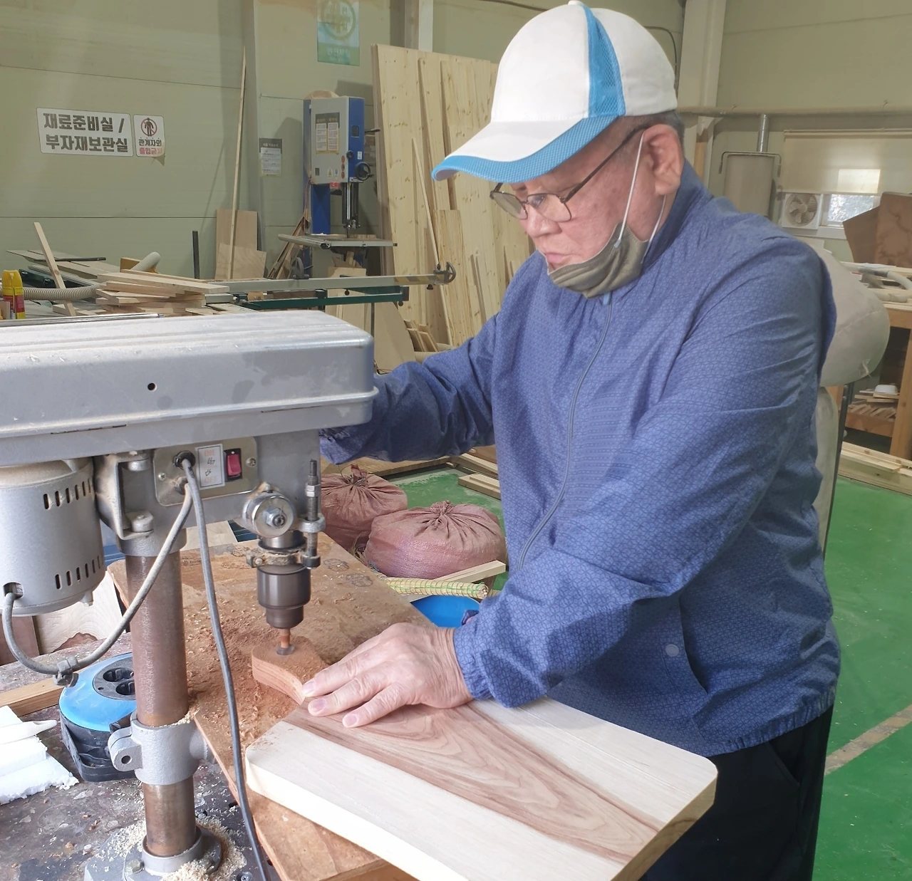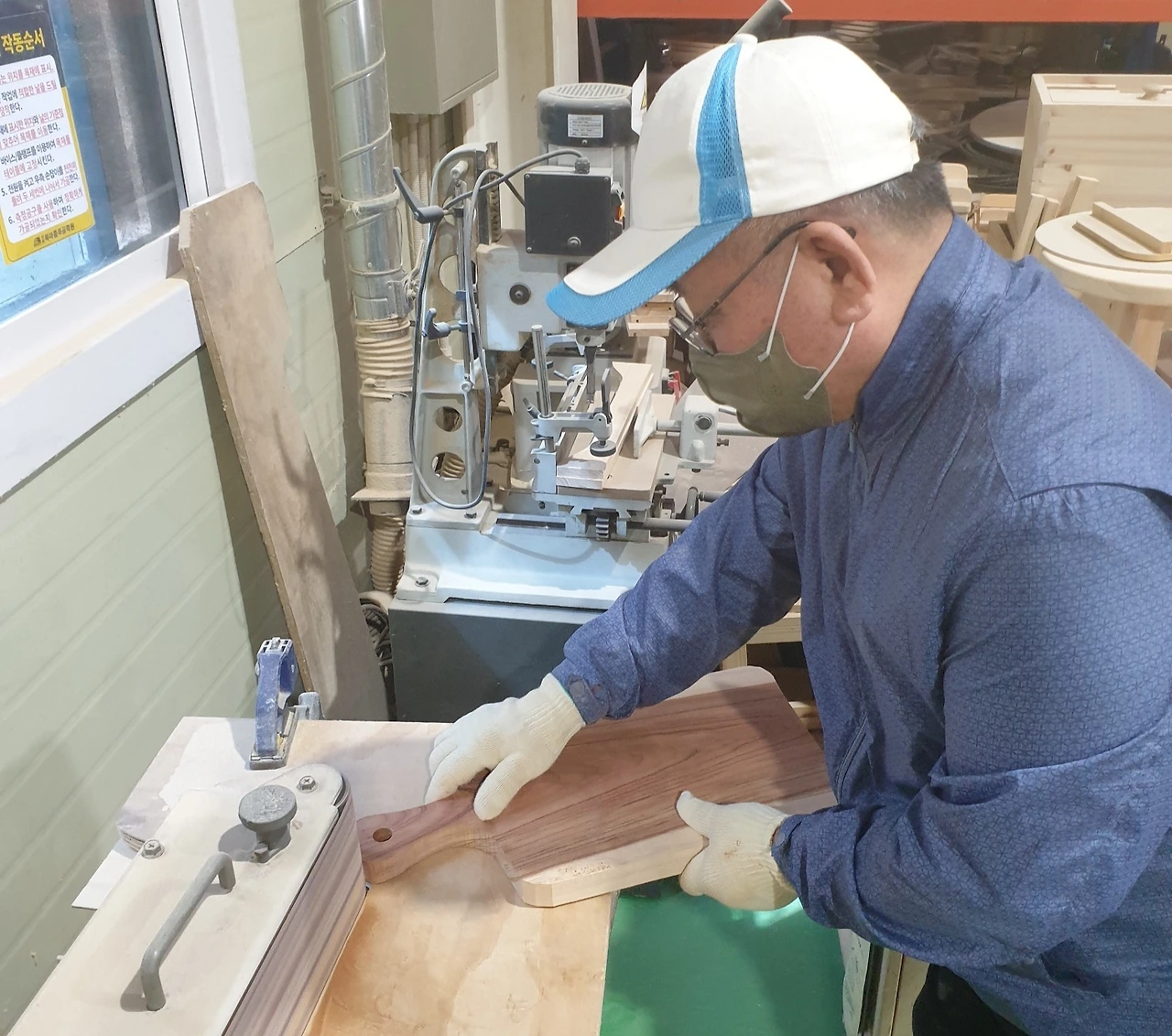 두 번째 목공 수업에 가는 날 남편은 두 번째 작품으로 며느리들에게 나무 도마를 만들어 주겠다며 신나서 출발했다. 요즘도 목공 학원에 단체로 와서 연수받는 분이 많다고 한다. 나도 예전에 교사 연수로 도마를 만들어보았는데 그땐 편백나무 도마를 만들었다. 그때 만든 도마를 지금도 잘 쓰고 있다.