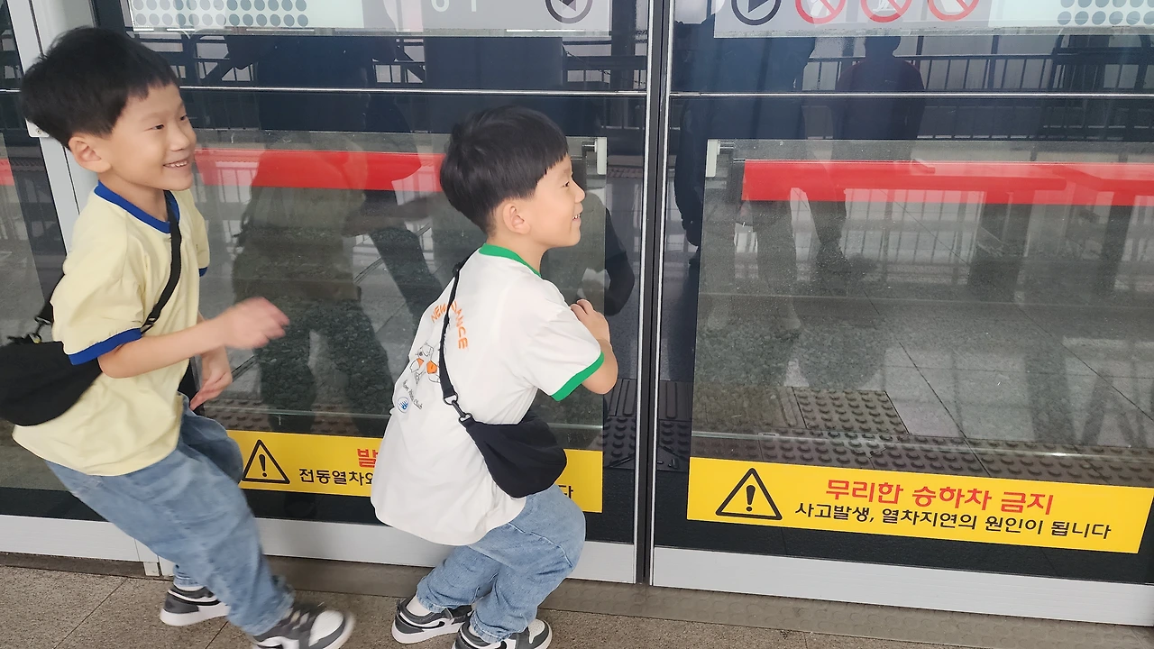 집에 오는 차 안에서 손자들이 오늘 동두천역에 가 본 것도 좋았고, '놀자 숲'에서 신나게 논 것도 좋았다며 다음에 또 오고 싶다고 했다. 다음에 오게 되면 소요산행 전철 시간표를 꼭 확인하고 가야겠다. 그리고 키가 모자라서 타지 못한 것과 오늘 무섭다고 도전하지 못한 '클라이밍 존'에도 도전해 봐야겠다. 손자들과 함께한 오늘, 나도 남편도 손자들과 추억 하나를 더해서 행복했다.