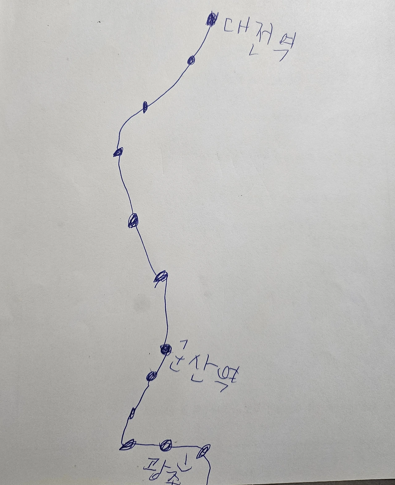 그러던 손자들이 요즘은 우리나라 지하철 노선도에 관심을 가지게 되어 수도권 지하철뿐만 아니라 지방에 있는 지하철역 등도 핸드폰으로 검색하며 익히게 되었다. 저절로 우리나라 도시 이름도 알게 되었고, 노선도를 거의 외우는 것도 참 신기하다. 지하철 노선도를 보다가 할머니에게 물어본다.