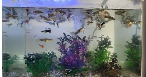 우리 집에서 반려 물고기인 구피를 키우기 시작한 것은 쌍둥이 손자가 태어나고 1년쯤 뒤부터니까 벌써 6년이 넘었다. 구피를 키우면 쌍둥이 손자가 좋아할 것 같아서 시작하게 되었다. 처음에는 학교 연못에서 구피를 키우시는 학교 교직원에게 몇 마리를 분양받아서 키우기 시작했는데, 구피가 번식이 안 되어 다시 과학 실무사님(교직원)이 집에서 키우는 구피를 암수를 맞추어서 몇 마리 더 가져다주어서 어항도 큰 걸로 바꾸어 키웠다.