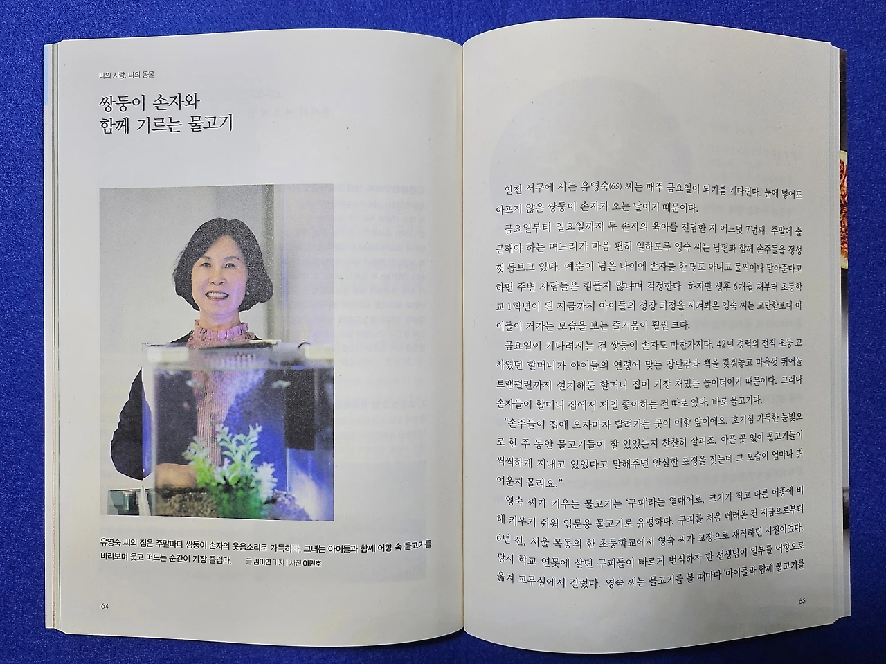 2024년 1월에 글 한 편을 써서 발행했다. 반려 동물 대신 반려물고기를 키운다는 글이다. 이 글이 인연이 되어 올해 9월 29일에 샘터 기자와 인터뷰를 진행했다. <샘터>에 '나의 사랑, 나의 동물' 코너가 있는데 물고기 키우는 분을 찾던 중 내가 쓴 물고기 키우는 글을 보았다고 하였다.