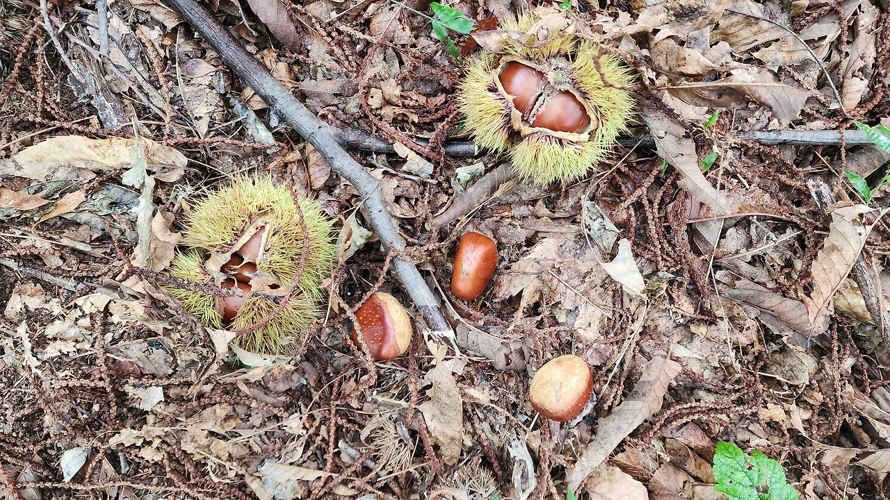 "여기 밤 있어요. 밤이 많이 떨어졌네요."