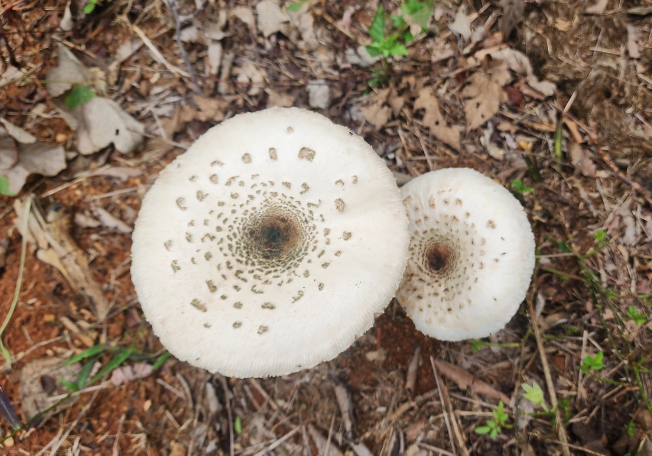 오늘 목표는 밤 10개씩 줍는 거였는데 길 따라 한 바퀴 돌다 보니 10개를 훨씬 넘게 주웠다. 산에는 밤 말고도 여러 가지 관심거리가 많았다. 길옆에 예쁜 버섯이 있어서 AI 제미나이에게 라이브로 물어보았더니 '독 흰 갈대 버섯' 같다며