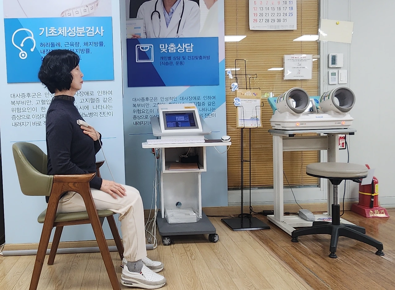 지난달부터 남편과 건강관리를 위해 가까운 행복복지센터에 있는 보건소 '건강생활지원센터'에 다니고 있다. 전화로 사전에 예약하고 가면 인바디 검사와 혈당, 혈압, 혈관 노화도 등의 검사를 받을 수 있다. 의사 선생님 상주하고 있어서 건강 상담도 받을 수 있다.