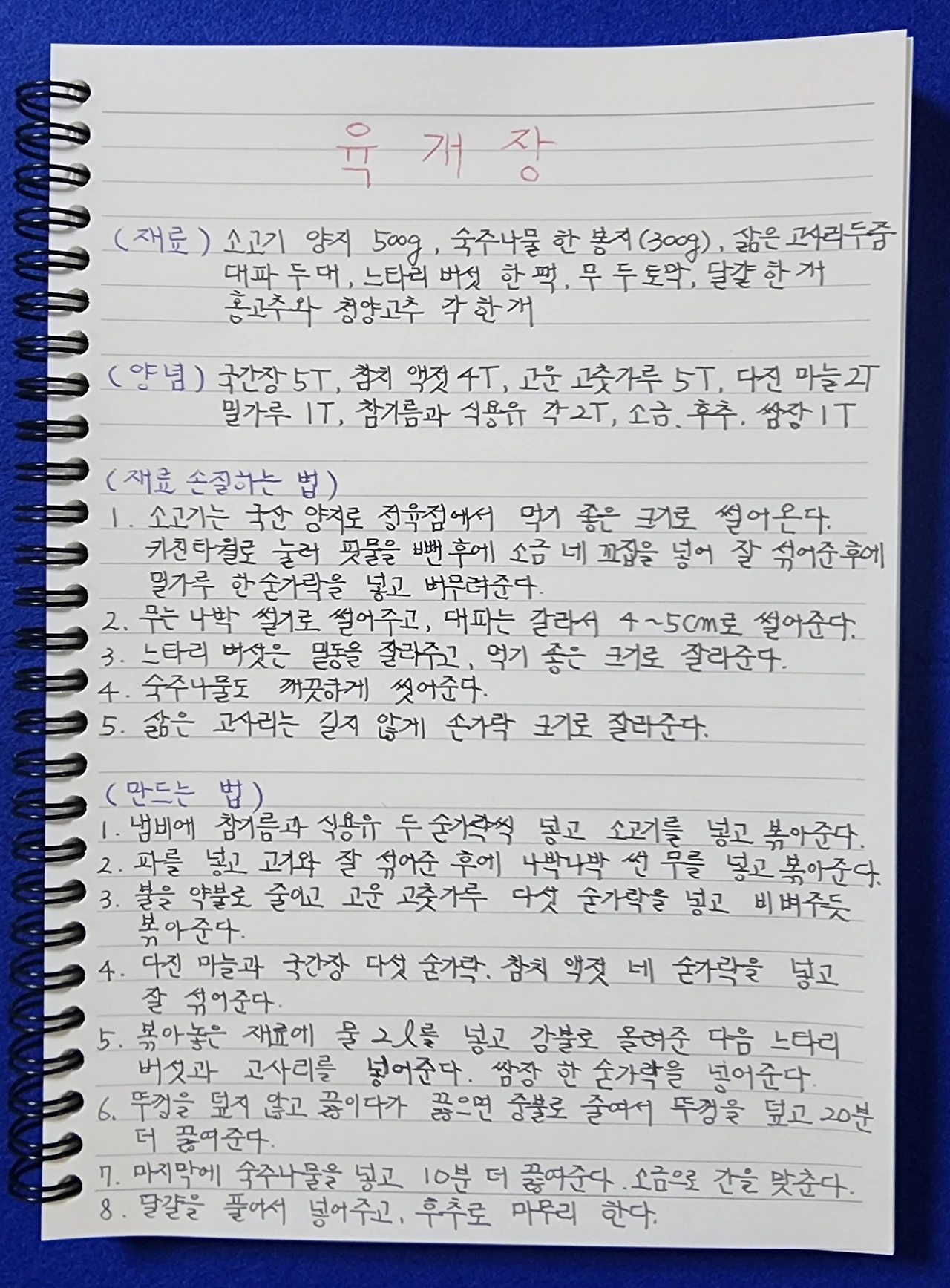 독감은 아니었지만, 심한 감기 몸살로 며칠 고생했는데 시누이가 끓여준 육개장 덕분에 기운을 차릴 수 있었다. 작년에 고생한 것이 생각나서 올해는 10월에 남편과 같이 가서 독감과 코로나 백신을 한꺼번에 맞았다. 요즘 독감이 유행이라고 하고, 이번 주도 날씨가 무척 추워진다고 하니 남편도 작년에 시누이가 끓여준 육개장이 생각난다며 육개장이 먹고 싶다고 해서 끓여보았다.