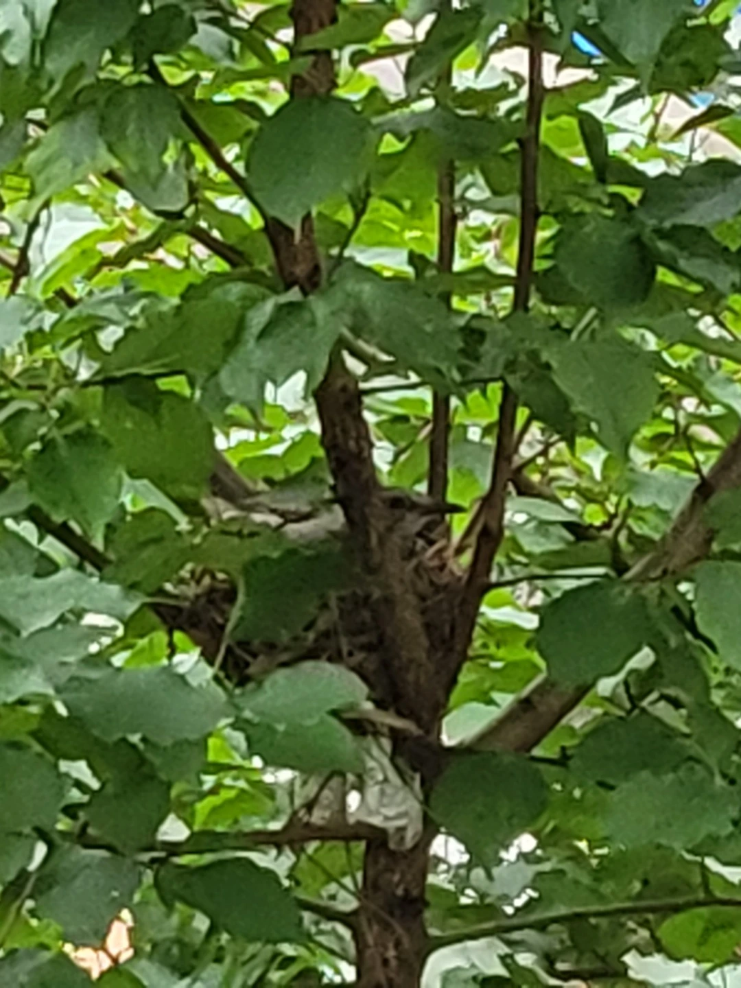 발코니 앞 매실나무에 집을 짓고 알을 품은 새