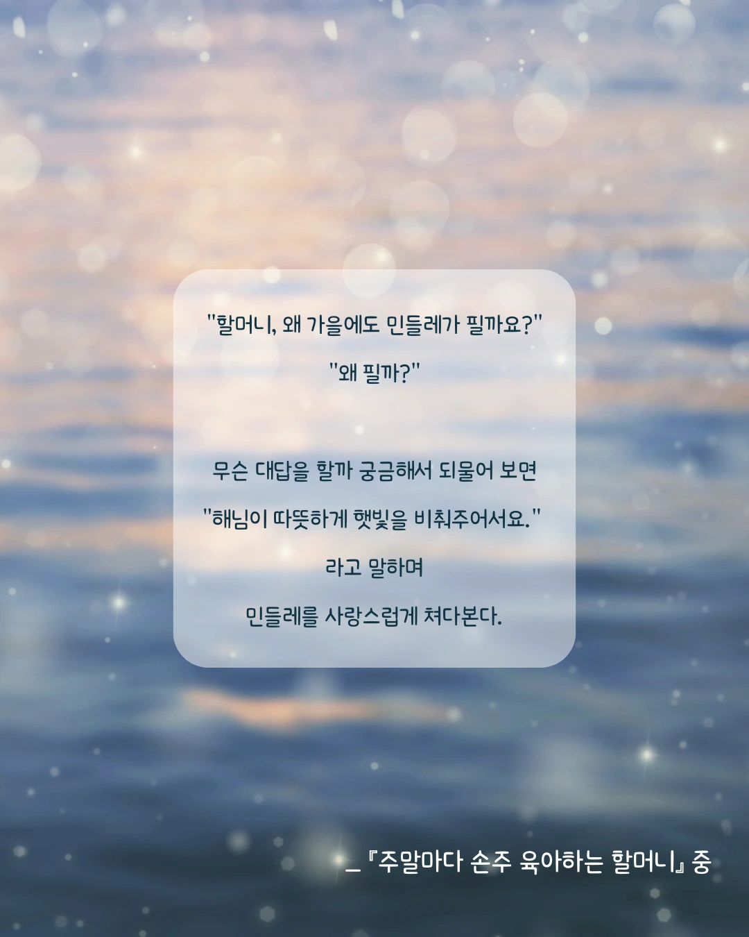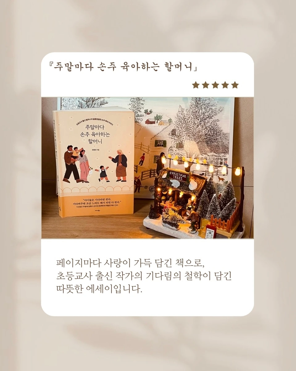 나는 인스타도 블로그도 하지 않는다. 유재은 작가님께서 인스타에 <주말마다 손주 육아하는 할머니> 책을 북리뷰 독서편지로 올려주시고, 메일로 사진을 보내주셨다. 그 다정함에 가슴이 뭉클해졌다. 그것뿐만 아니라 교보, 예스 24, 알리딘에도 리뷰를 남겨주셨다.