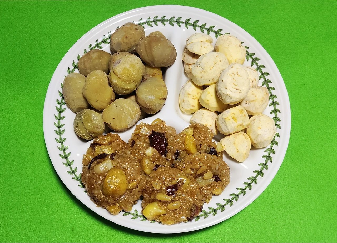 깐 생밤, 약밥, 찐 밤 등 밤으로 만든 간식 3종 세트