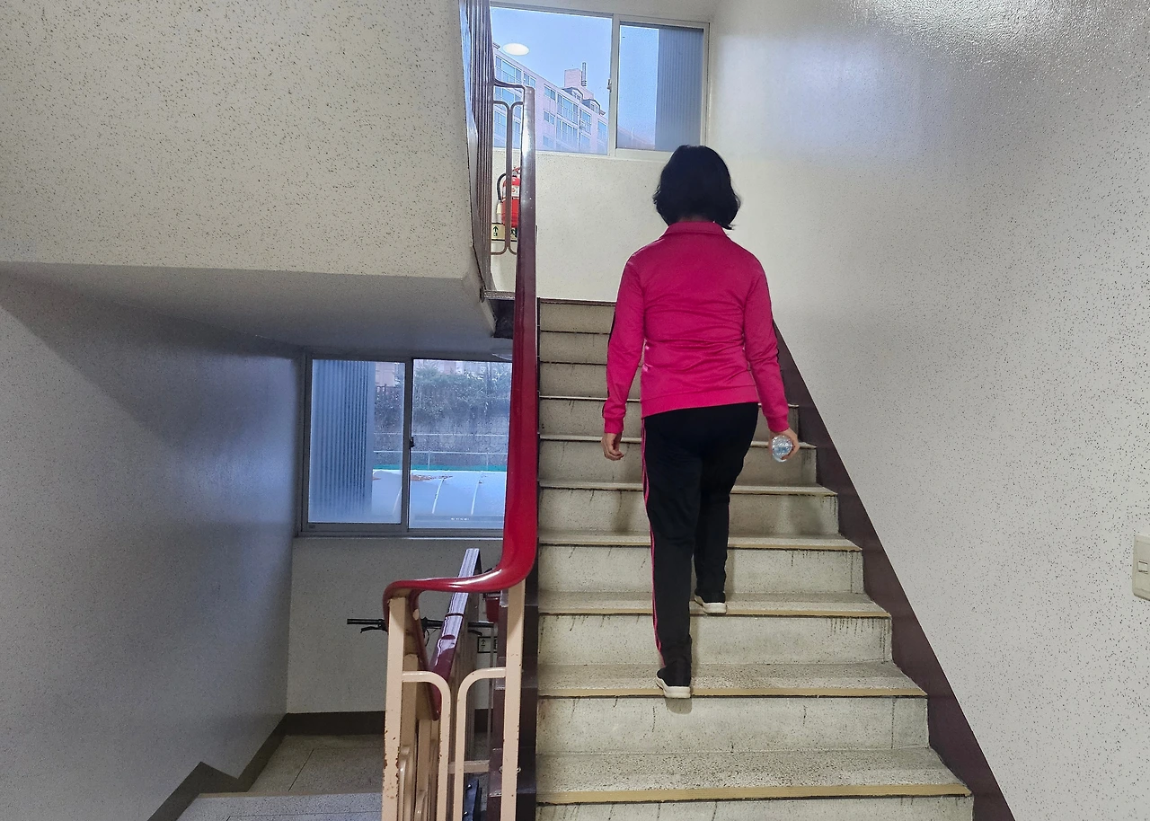 첫 번째 명상법은 '생수 들고 계단 오르기 명상법'이다. 요즘 근력 운동으로 계단 오르기를 많이 한다. 나도 아파트 18층까지 가끔 걸어서 올라간다. 하지만 단순한 계단 오르기는 명상법이 아니기에 계단을 오르며 내 몸 감각에 집중하고 호흡을 느껴야 한다.