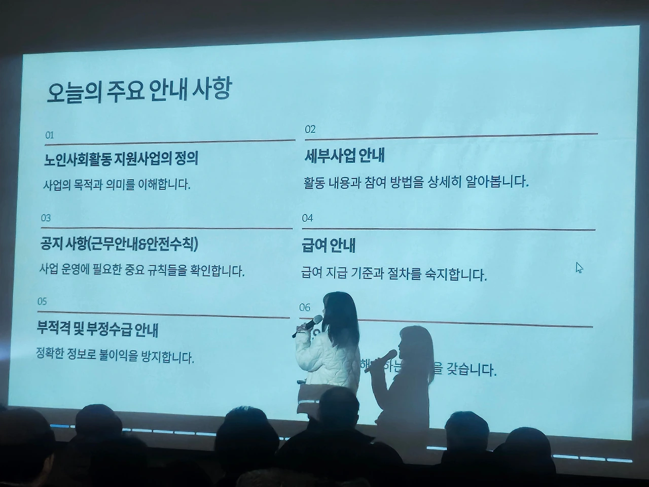 노인 일자리 사업의 목적과 의미를 들으니 교사 출신인 내가 전문성과 경험을 살려 지역사회에 봉사할 수 있는 기회를 얻었다는 생각에 뿌듯했다. 이번에 노인 복지관에 일자리를 신청한 분 중 선정된 비율은 평균 50% 정도라고 한다. 일하고 싶은 분은 많은데 일자리 수요가 적음을 알 수 있다. 나는 그래도 운이 좋아 선정된 것 같아 성실하게 참여해야겠다고 생각했다.