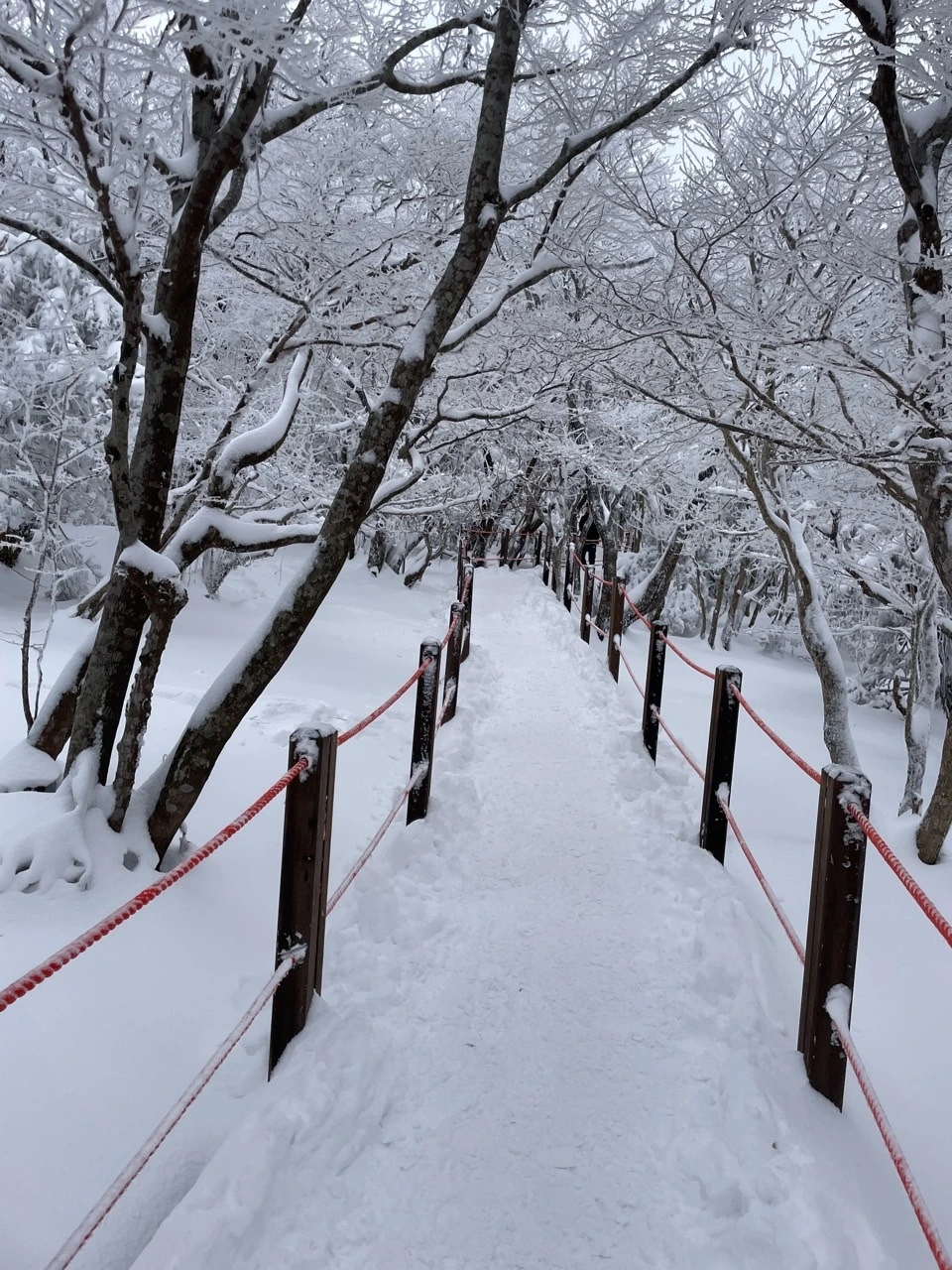 겨울왕국으로 들어서니 나무에는 눈꽃이 피어 있거나 폭설이 내려앉은 크리스마스트리들이 곳곳에 눈에 띈다. 눈에 가려 계단은 전혀 보이지 않고 온 세상이 하얗다. 하얀 카페트와 하얀 가로수들이 펼쳐지니 여기가 현실인지 가상현실인지 구분이 안 간다. 눈꽃이 가득한 나뭇가지들이 하늘을 덮고 노루가 다닌 흔적만 남아 있는 눈밭이 양 옆에 한없이 펼쳐진다. 숨을 쉬면 입김이 나오지만 몸에서는 열이 나고 나무와 수풀이 찬 바람을 막아주니 외투 속에는 온기가 가득하다. 걷다가 사진을 찍고 다시 걸으면서 앞에 일행들과 앞서거니 뒤서거니하며 걸어올라가다보면 어느 순간 파란 하늘이 눈 앞에 펼쳐진다. 그 때 뒤를 돌아보면 또 다른 눈 내린 거대한 오름과 하늘이 내 뒤를 받쳐주고 있음을 깨닫는다. 감탄과 함께 한숨을 돌린 후 다시 오른다. 탐방로 입구가 점점 좁아져 내려오는 사람들에게 길을 내주느라 서서 기다려야 한다. 그리고 코너를 돌면 마지막 계단이 나타난다. 계단을 오르는 그 순간이 짜릿하다. 숲에서 빠져나오는 쾌감과 하늘과 만나는 시원함, 뒤를 돌면 눈꽃들이 가득한 하얀 꽃밭이 펼쳐지고 멀리 푸른 제주 시내와 바다가 펼쳐진 광활한 풍경을 마주하는 감동 이 모든 것을 한 순간에 느낄 수 있다. 한참을 정상에서 서성이고 눈이 쌓인 한라산일대를 감상하고 나면 올라올 때 송글송글 맺혔던 땀이 식으며 한기가 돈다. 그 때 따뜻한 음료가 필요하다. 가져 온 보리차로 몸을 다시 데우고 추위에 급격하게 배터리가 떨어진 핸드폰으로 사진 몇 장을 더 찍고 하산한다.