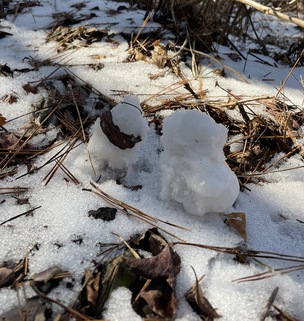 그 때 일정하게 무언가를 두드리는 소리가 멀리서부터 들린다. ‘숲에서 누가 망치질을 하는 걸까?’ 허무맹랑한 의문을 품으며 길을 따라간다. 아니면 ‘그 유명한 동물이 여기 있나?’하고 우리끼리 추측하며 소리에 점점 가까워진다. 설마하는 의심이 확신으로 바뀌었다. 정말 딱따구리가 열심히 나무를 두드리고 있는 소리였다. 딱따구리가 나무에 구멍을 내려면 이렇게 힘들게 쪼아야 한다는 것을 처음 알았다. 내가 저렇게 쫀다면 뇌진탕에 걸려 이미 졸도할 정도로 센 강도다. 동물원에서도 보기 힘든 딱따구리가 나무에 구멍내는 장면을 목도하니 우리는 흥분의 도가니였다. 여느 가수의 콘서트보다 보기 힘든 장면 아닌가. 한창 그의 공연을 감상하고 나서 쎈이 마무리한 작품을 딱따구리 공연장 앞에 살그머니 내려놓는다. 아기 눈사람이었다. 오랫동안 녹지않고 잘 살아있게 해 달라고 빌며 하산한다. 여름에 다시 올랐을 때 당연히 눈사람은 저 세상에 가고 그 자리에 없었지만 우리들의 추억거리로 입방아에 남았다.