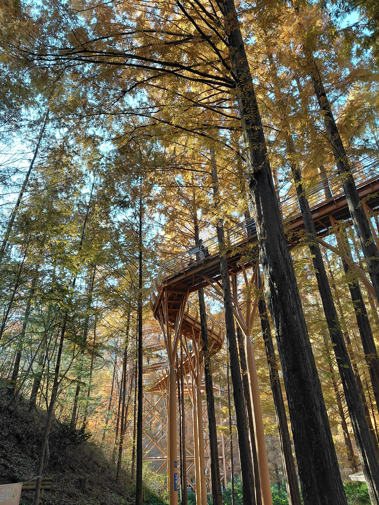 키가 큰 메타쉐 콰이어 나무들 사이로 만들어진 둥그런 원형의 설치물은 올라가는 재미가 있었다.