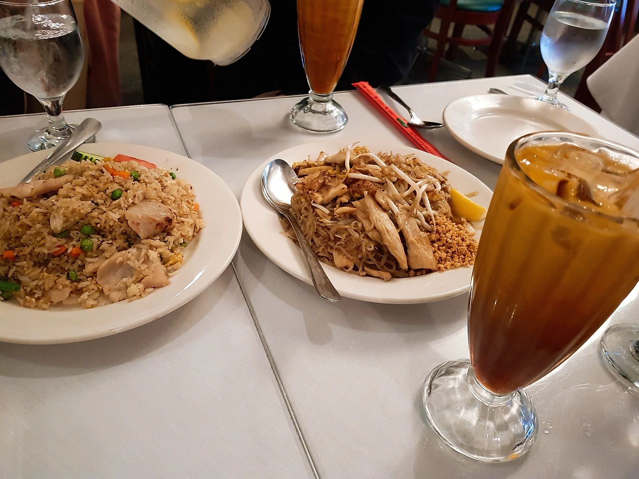 친구들과 같이 간 날은 조금 더 다양한 메뉴를 맛볼 수 있었다. 볶음밥과 팟타이에는 역시나 이 가게 특유의 닭고기와 고소하고 짭짤한 소스가 들어갔다. 그리고 밀크티도 시켜 보았는데 달달하고 시원해서 정말 맛있었다.