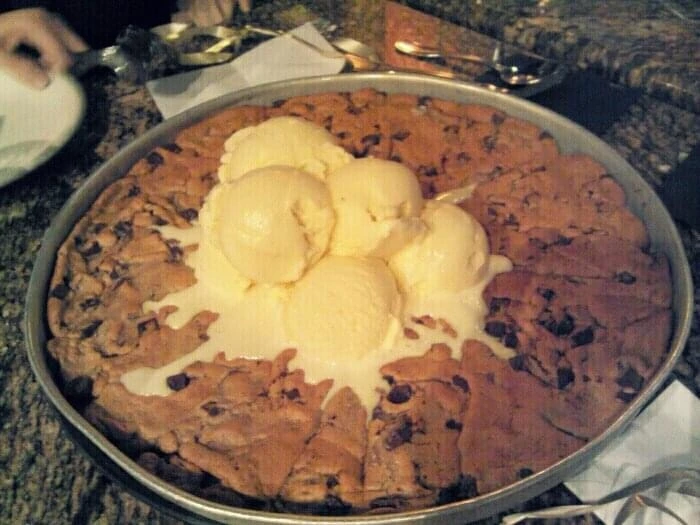 그리고 이곳에서 디저트로 피주키 (pizookie)를 맛보았다. 이름부터 낯설었다. 그날의 식당 메뉴는 잘 기억이 안 나지만 이 피주키는 기억이 난다. 미국 친구들이 강력히 추천하던 디저트 메뉴였다. 처음에는 비주얼을 보고 조금 충격을 받았다. 정말 미국적인 음식이라는 생각을 했던 메뉴이다. 지금 봐도 어떻게 저런 생각을 했을까 싶기도 하다.