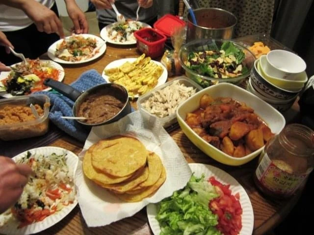 하지만 말 그대로 다양한 음식을 각자 하나씩 가져오면 되는 것이었다. 내 생각보다 편안한 분위기였다. 각자 준비한 음식을 꺼내 나누어 먹다 보니 작은 뷔페 분위기도 났다. 타코를 준비한 친구도 있고 샐러드를 가져오기도 했다. 어떤 걸 가져올지 종류도 양도 정해진 게 없었다.