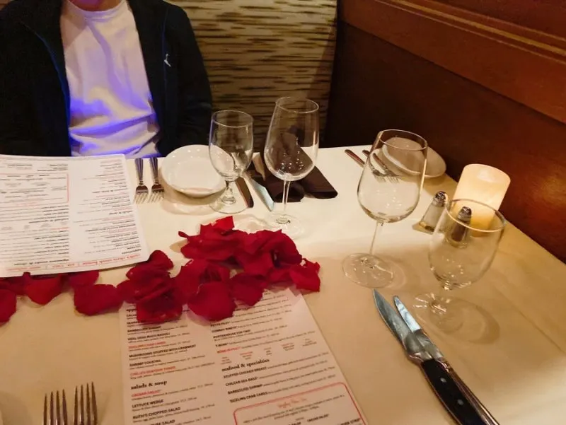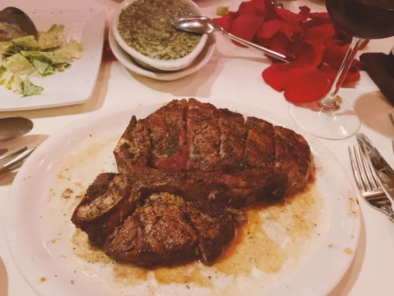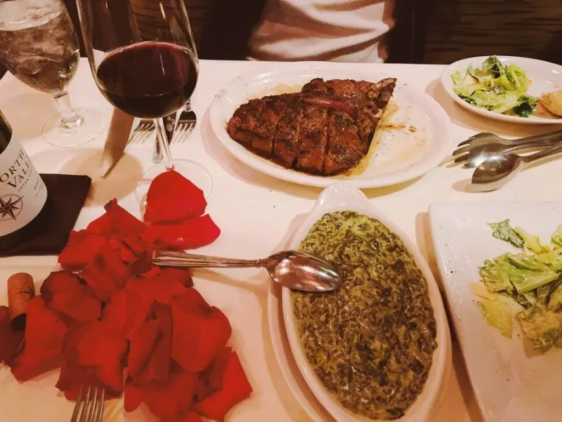 허니문이라는 이야기를 해서인지 테이블에 장미꽃잎 장식을 해주셨다. 스테이크도, 사이드로 나오는 메뉴들도 다 맛있었다.