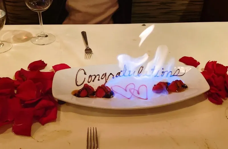 서비스로 congratulations가 적힌 접시에 디저트와 함께 화르륵 불쇼를 선보여 주셨다.