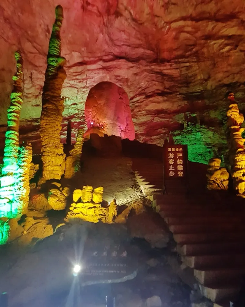 중국은 화려한 색감을 좋아하는지 동굴 내부에 붉은색, 노랑, 초록 등 색색의 조명으로 종유석이 잘 보이게 비추고 있었다.