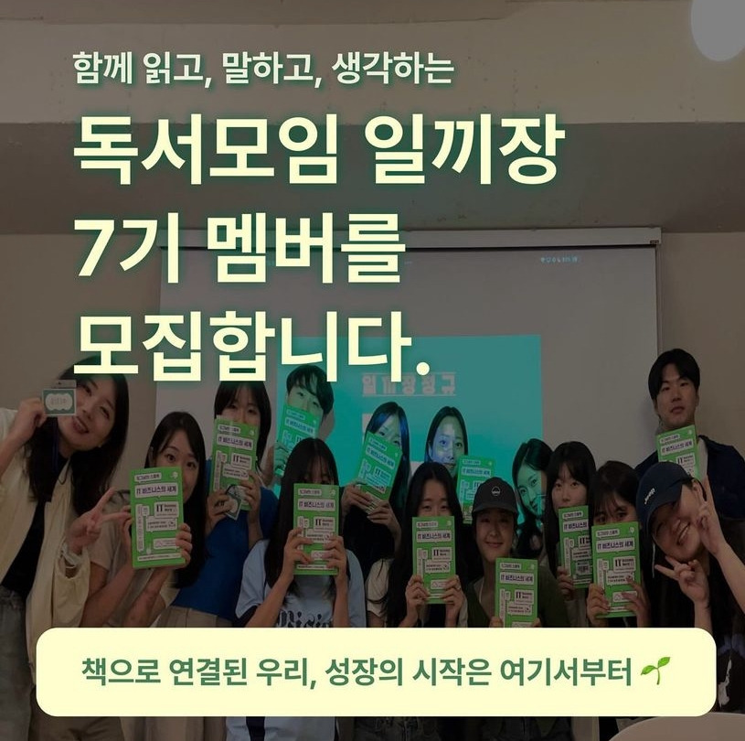 일끼장에서는 현재 각 그룹별로 독서모임 그룹원도 모집 중이다. 5번의 온라인 모임을 하고 1번 오프라인 모임도 있다. 1월부터 시작할 독서모임, 정말 기대가 된다.