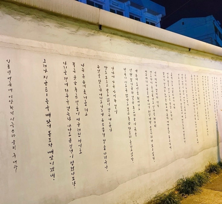 대구 근대골목을 쭉 따라 걸으면서 밤 산책을 했다. 대구의 역사를 느낄 수 있는 여행이었다. ‘빼앗긴 들에도 봄은 오는가..‘ 이상화 시인의 시가 써진 거리도 지났다.