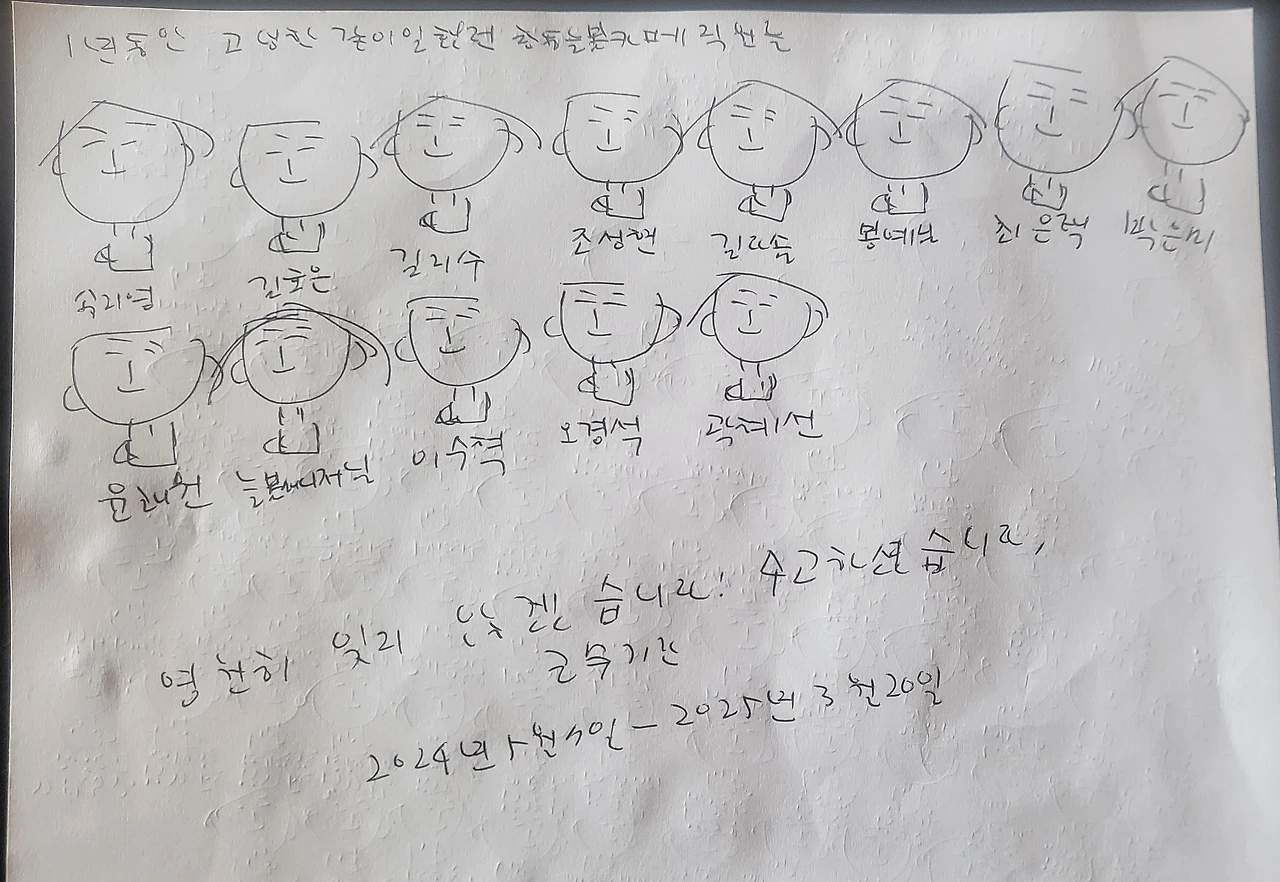 (아들이 동료들 이름 잊지 않겠다며 그린 그림)