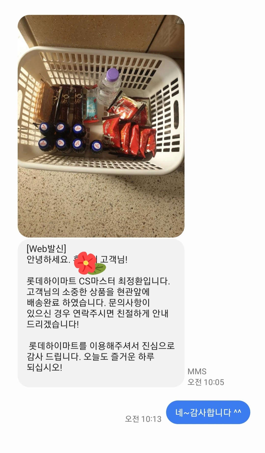 롯데마트 기사님도 바쁜 와중에 이런 문자도 주시니 얼마나 행복한지 모른다