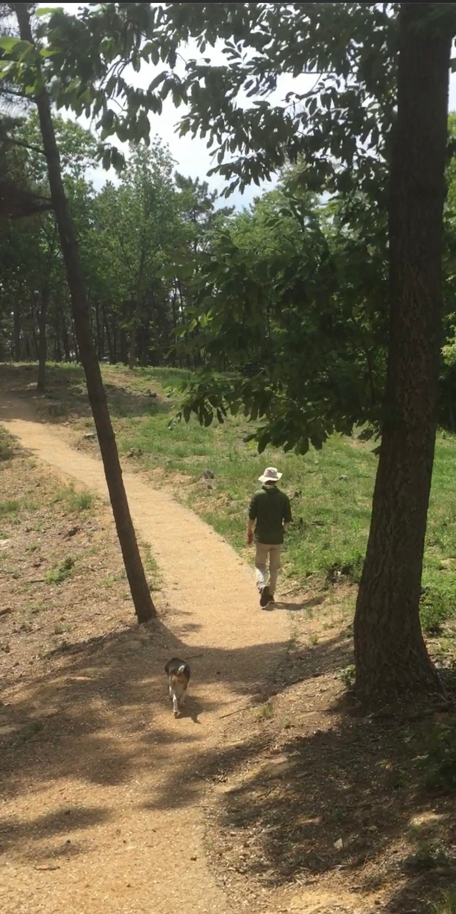 반려견과 함께 산 지 7년이 넘었으니, 산책을 다닌 지도 7년이 지났다. 처음에는 내가 반려견을 산책시켜 주는 거라 생각했다. 하지만 착각이었다. 반려견이 없었다면 과연 지금처럼 매일 산책을 했을지 장담할 수 없다. 아마도 하지 않았을 가능성이 크다. 그렇다면 내가 아니라, 오히려 반려견이 이제까지 나와 아내를 산책시켜 주고 있었던 것이 아닌가. 이 기특한 녀석이 7년 넘게 우리의 건강을 책임지는 전담 트레이너가 되어, 급여도 받지 않고서 묵묵히 우리를 데리고 다녔던 것이다.(밥값을 한 것인가?) 하루 대부분의 시간을 집에서 보내는 아내와 나를 위해 신선한 바깥공기를 마시게 하고, 숲의 초록을 보게 한 것이다. 나이가 들수록 게을러지는 몸을 움직이게 하고, 줄어가는 다리의 근력을 길러주고 있었던 것이다.
