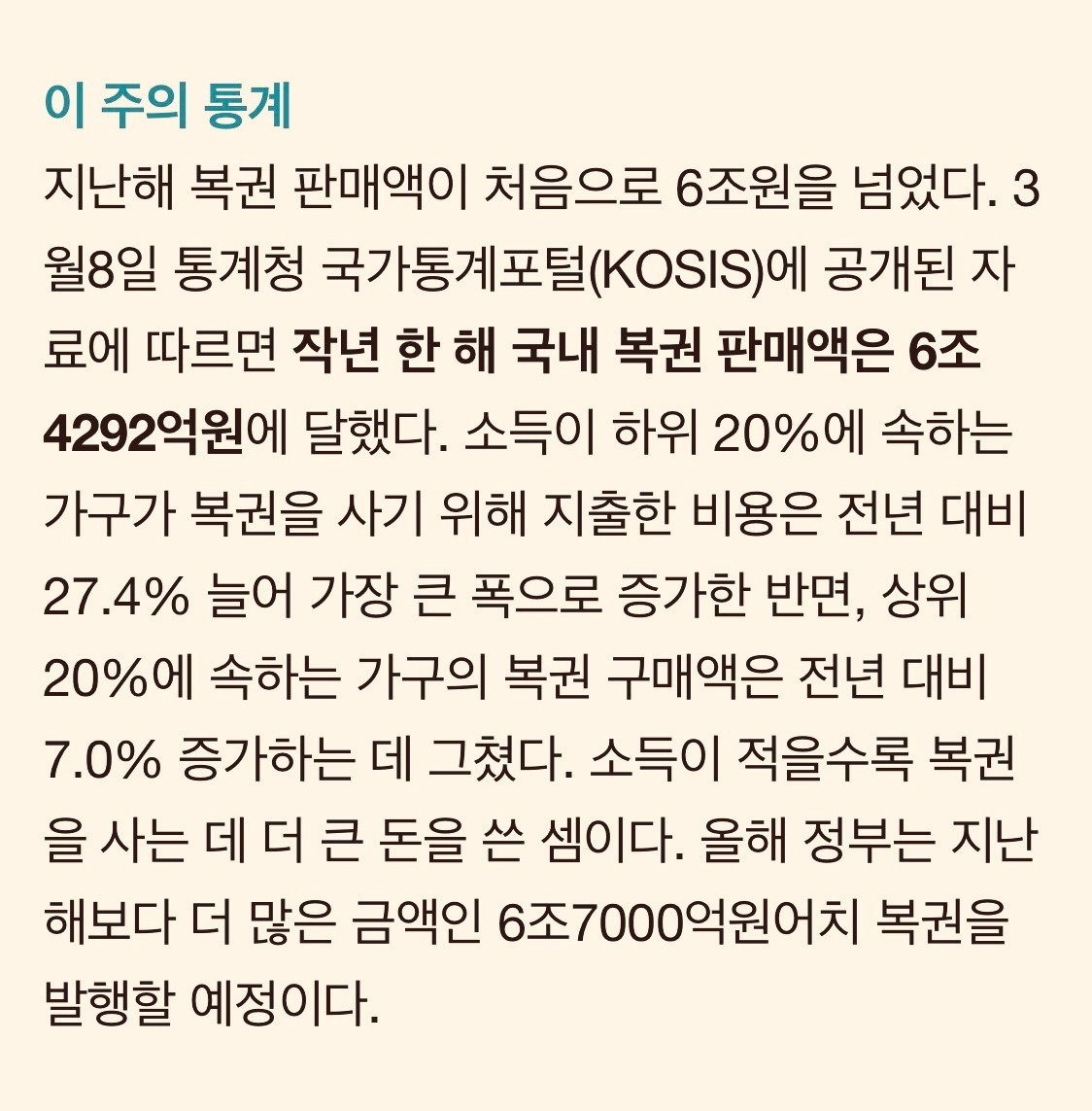 고대 로마 시대와 16세기 유럽 국가들만 이득을 봤을까? 몇 세기가 지난 오늘날은 어떨까? 로또를 포함한 복권 판매액이 2020년 사상 처음으로 5조 원을 돌파했고, 2022년에는 6조 원을 넘어섰다고 한다. 인생역전을 바라는 서민들이 연간 이렇게나 많은 돈을 주머니에서 자발적으로 내고 있다는 사실이 놀랍다.