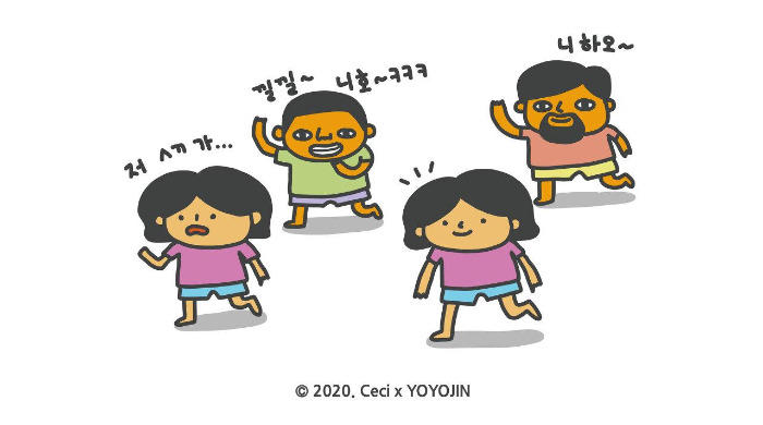 이 뒤에는 그 나라 사람들이 공유하고 있는 인식이 있다. 개인의 경험은 단편적이고 섬세하고 미묘하지만, 이런 상황을 야기하는 인식은 매우 정치적이고 구조적이고 거시적이다. 그렇기 때문에, 이 상황은 개인이 어떻게 할 수 있는 수준이 아니다. 그래서 더 무력감이 오고 좌절감이 들기도 한다. 이럴 때, 정신건강을 챙기기 위해서 내가 쓰는 방법은, 걸어다니거나 쇼핑할 때, 연예인 된 기분을 느끼거나(이놈의 유명세, 어딜 가도 다들 알아보고 쳐다보는구만!), 머릿속으로 복싱 스파링 이미지 트레이닝을 하거나(한 놈만 걸려, 아주 다 뒤졌어), 가장 효과적인 건, 걸어다닐 때 친구나 애인이나 동생과 통화하며 수다 떨기. 시선을 덜 의식하게 되고, 기분 나쁜 일이 발생하면 바로 말로 풀 수 있고, 쓸데없는 소리를 안 들을 수 있다.