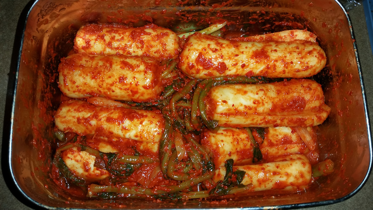 장모님의 고춧가루 덕에 완성된 총각김치의 색깔은 환상 그 자체였다. 색깔, 모양 및 향으로만 평가를 내린다면 어디에 내놔도 흠잡을 데 없는 작품이 완성되었다.