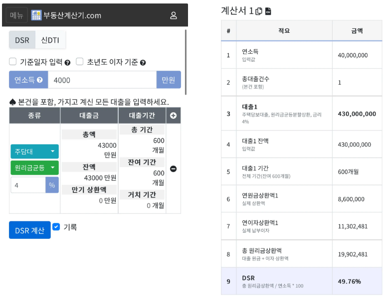- DSR : 최대 50%